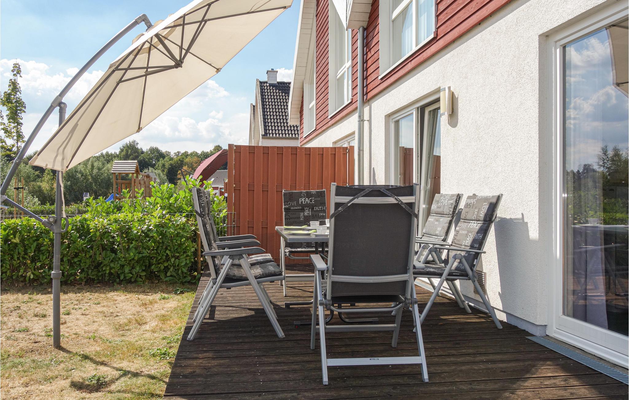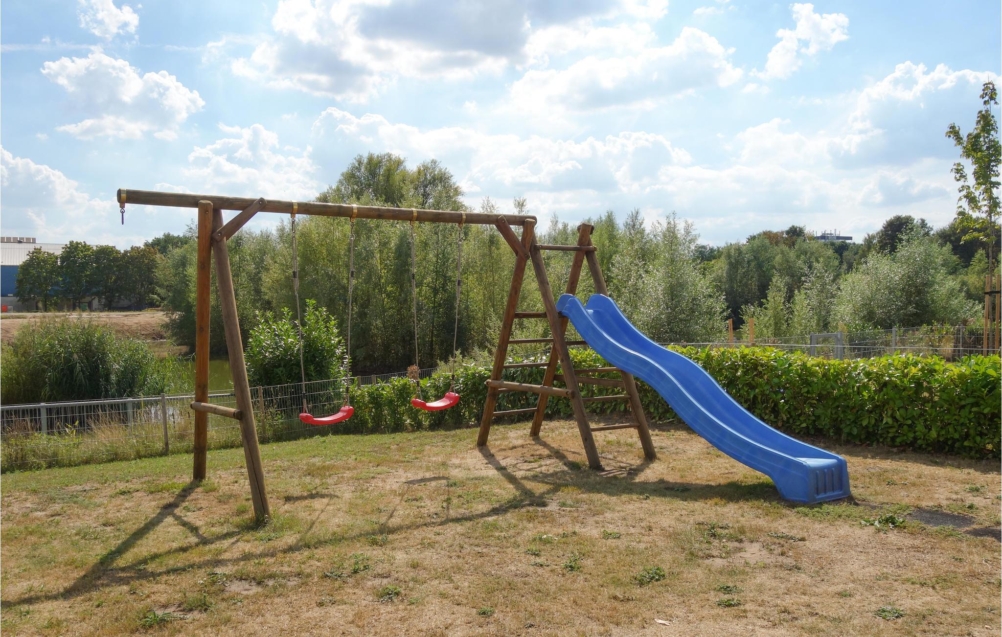 An sonnigen Tagen bietet die Terrasse den idealen Ort für entspannte Stunden im Freien. Lassen Sie die Kinder schaukeln oder an der Rutsche spielen, während Sie sich unter dem Parasol bei einer kalten Erfrischung erholen.