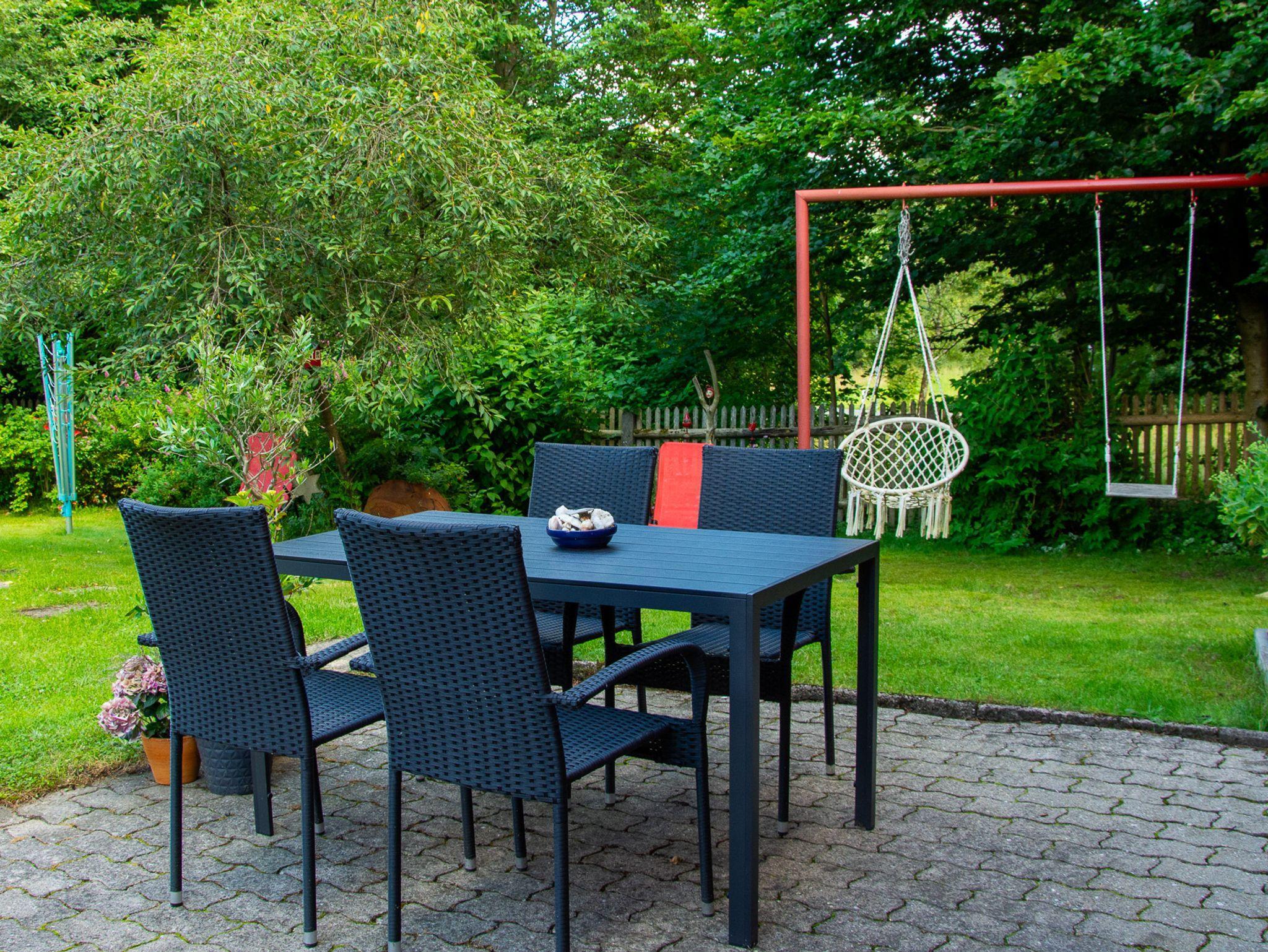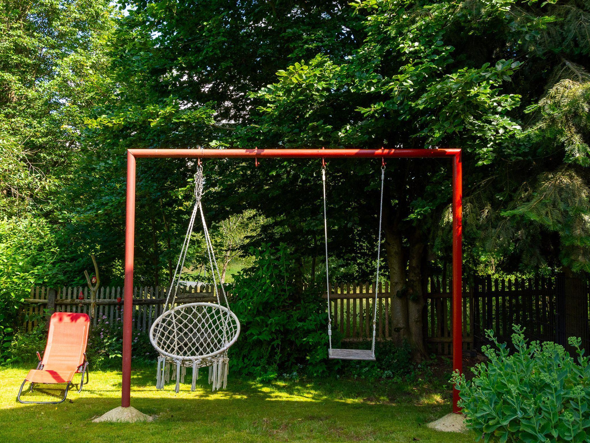 Ein Grillplatz und der große Garten mit altem Baumbestand laden zum Ausruhen ein.