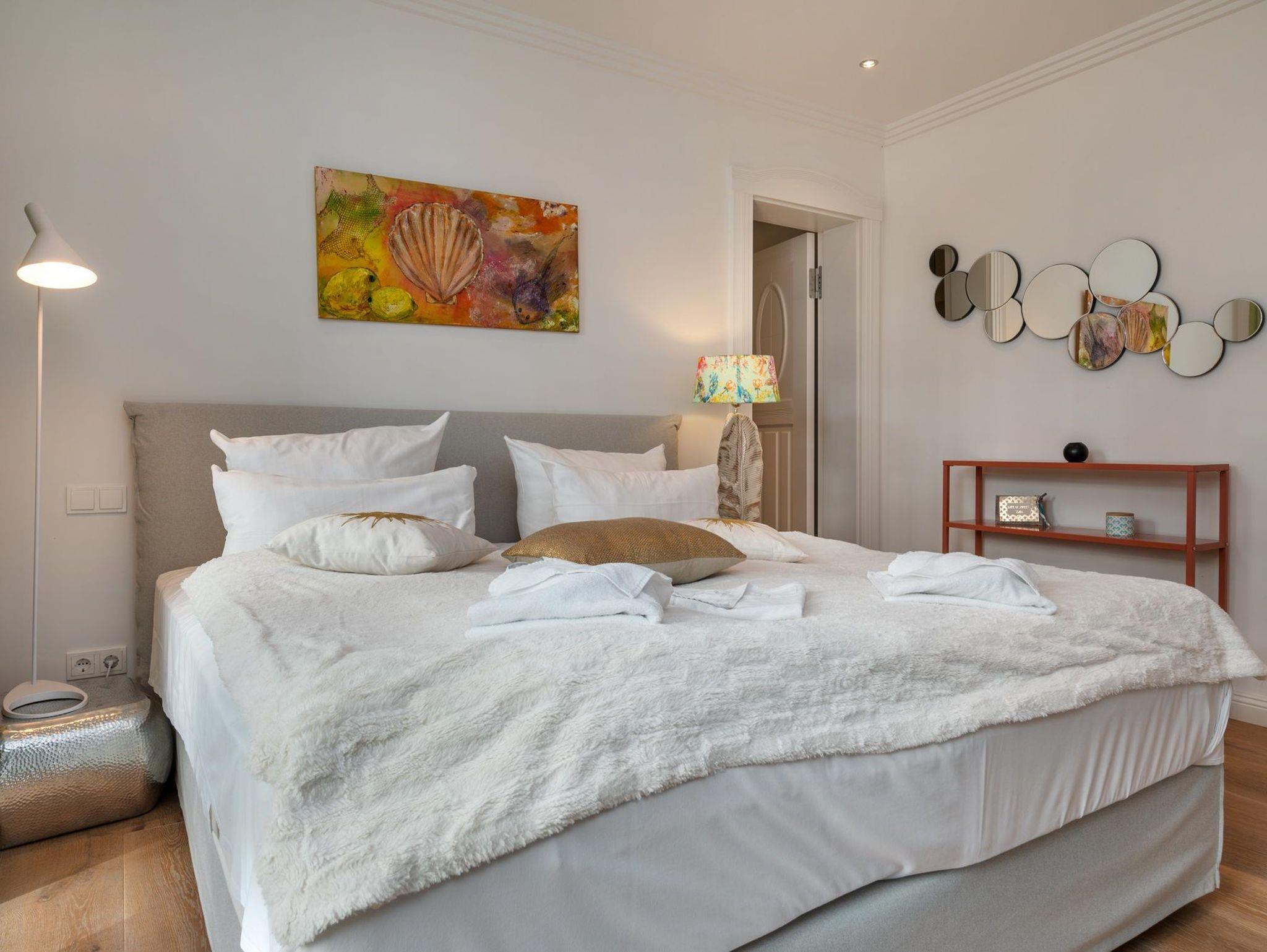 Bilder sagen mehr als 1000 Worte! Das Appartement Sea Shell in der Villa Theres ist ein Objekt für Menschen mit dem Sinn für das gewisse Etwas. Wohin man auch schaut - hier wird Luxus gelebt. Ihr Urlaubsdomizil begrüßt Sie seitlich in der Villa Theres und erstreckt sich über das erste und zweite Obergeschoss, bequem zu erreichen mit dem hauseigenen Lift. Zwar können Sie hier keinen Meerblick genießen, aber bis zum Selliner Strand mit der Seebrücke sind es ja auch nur knapp 50 Meter ...