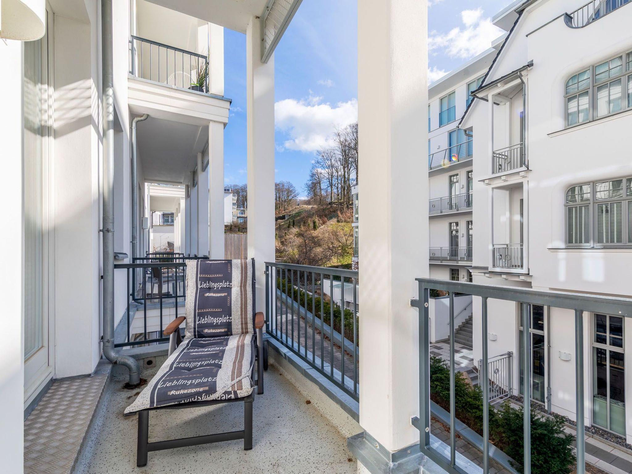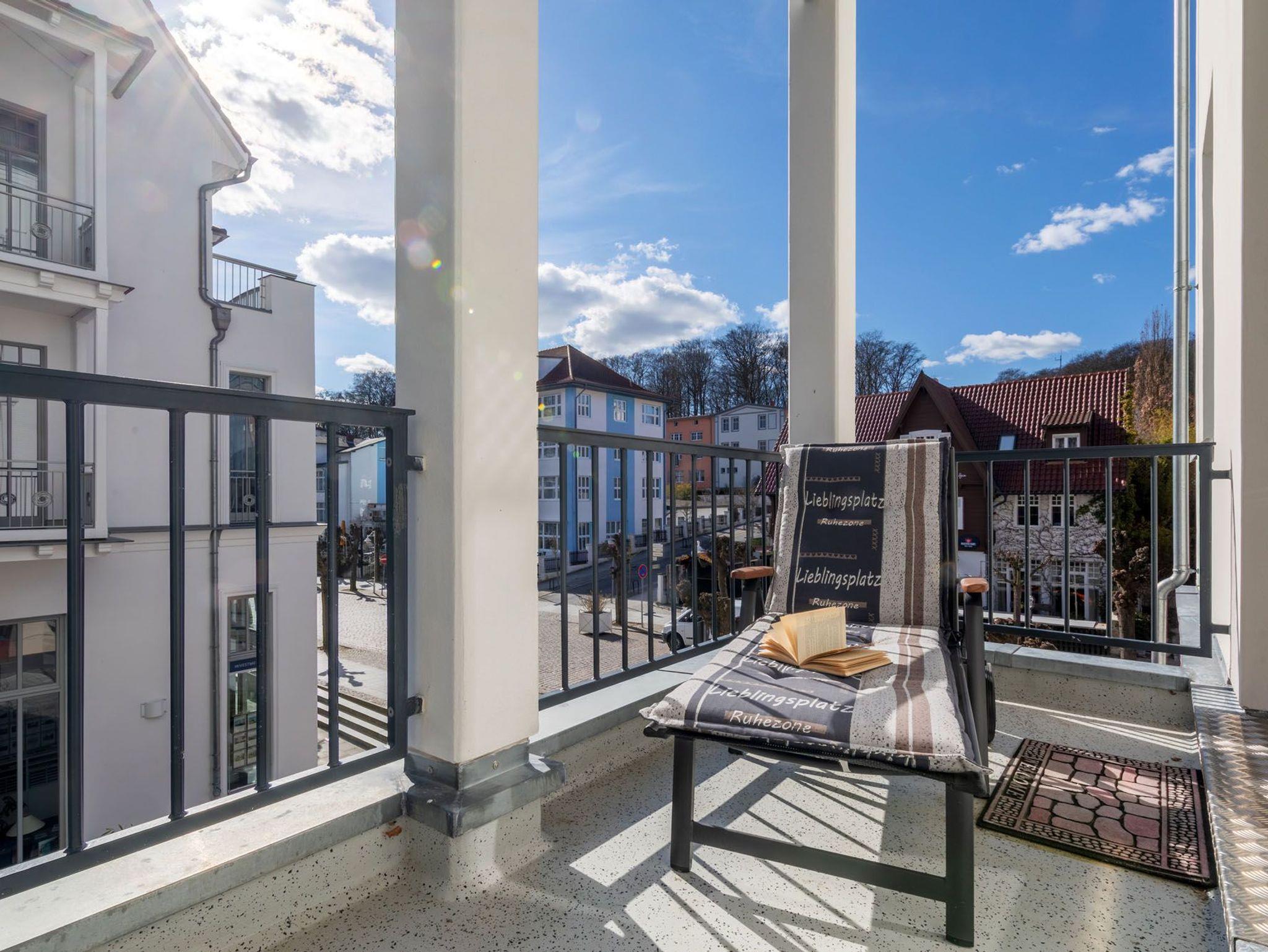 Luxuriöse Ferienwohnung FIRST Avalon in Sellin mit Balkon, Wellnessbereich und Panoramablick auf die Ostsee.