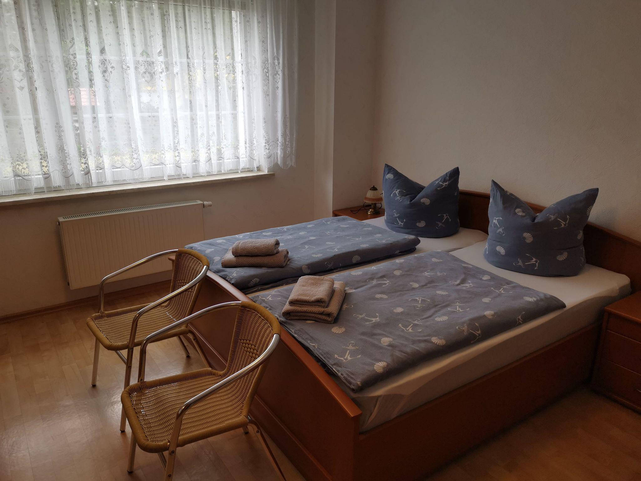Die Standartbelegung mit 2 Personen ist im unteren Bereich. Für eine Belegung mit 4 Personen steht noch ein weiteres Schlafzimmer für 2 Personen in der oberen Etage mit separater DU/WC zur Verfügung.