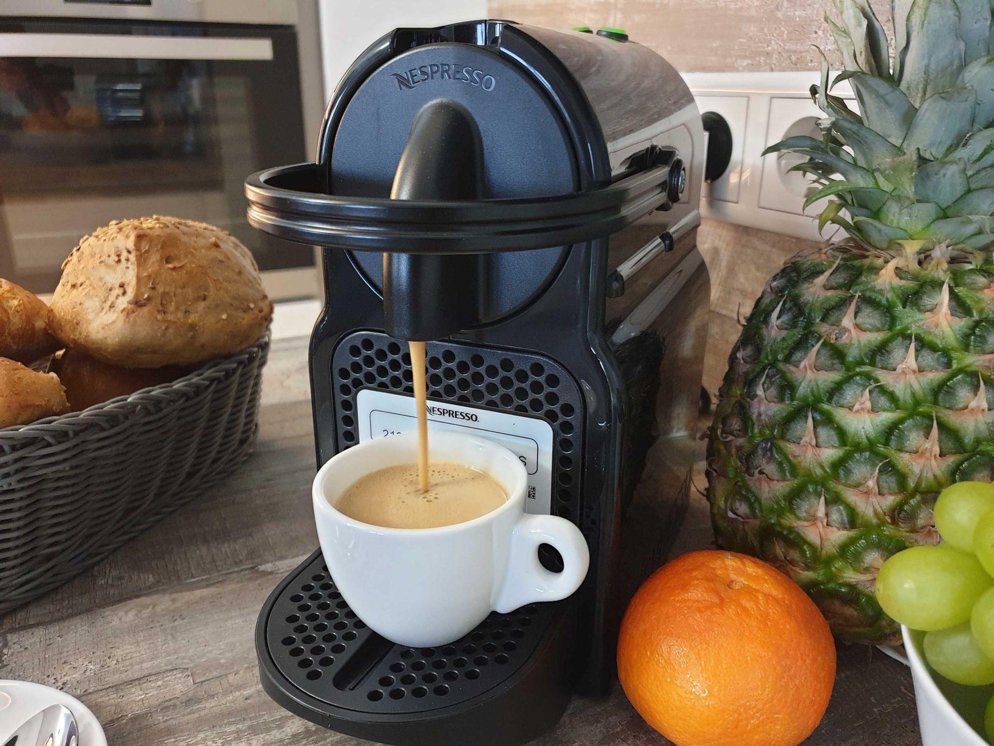 Und wenn Sie keine Lust haben essen zu gehen, bereiten Sie sich in der komplett eingerichteten Küchenzeile Ihr eigenes Dinner zu. Alles was es dazu braucht ist vorhanden. Moderne Küchengeräte, ob Mikrowelle, Multifunktionsbackofen oder Induktionskochfeld, ob geräumiger Kühlschrank oder großes Gefrierfach, machen das Schlemmen leicht. Und im Anschluss sorgt der Geschirrspüler schnell wieder für sauberes Geschirr. Zusätzlich steht eine Nespresso-Maschine mit Milchaufschäumer (6er-Kapsel-Grundausstattung vorhanden) oder wer es lieber klassisch mag eine French-Press zur Verfügung.