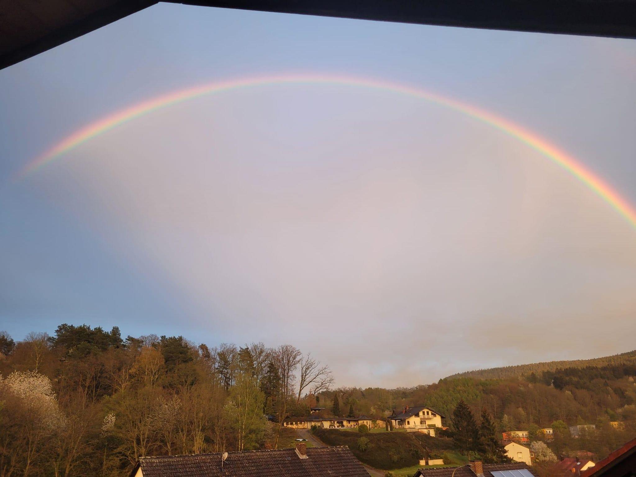 direkt am Waldrand. Modern eingerichtete Ferienwohnung mit Tel., TV, W-Lan, Dusche/WC und Wohnraum ,Kühlschrank. Terrasse, Liegewiese.