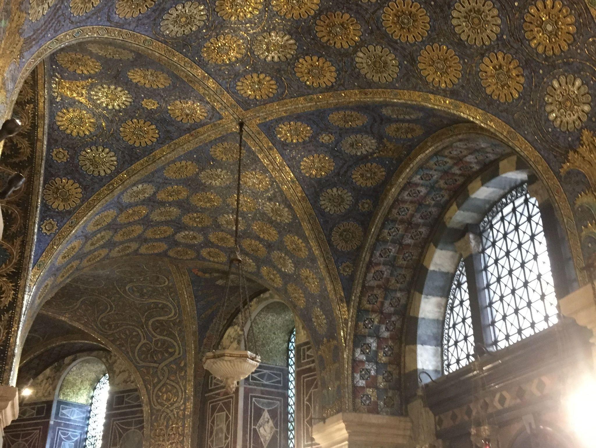 Das andere Badezimmer mit hellem Fliesenboden und Dusche mit Marmorfliesen überzeugt durch das historische Design.