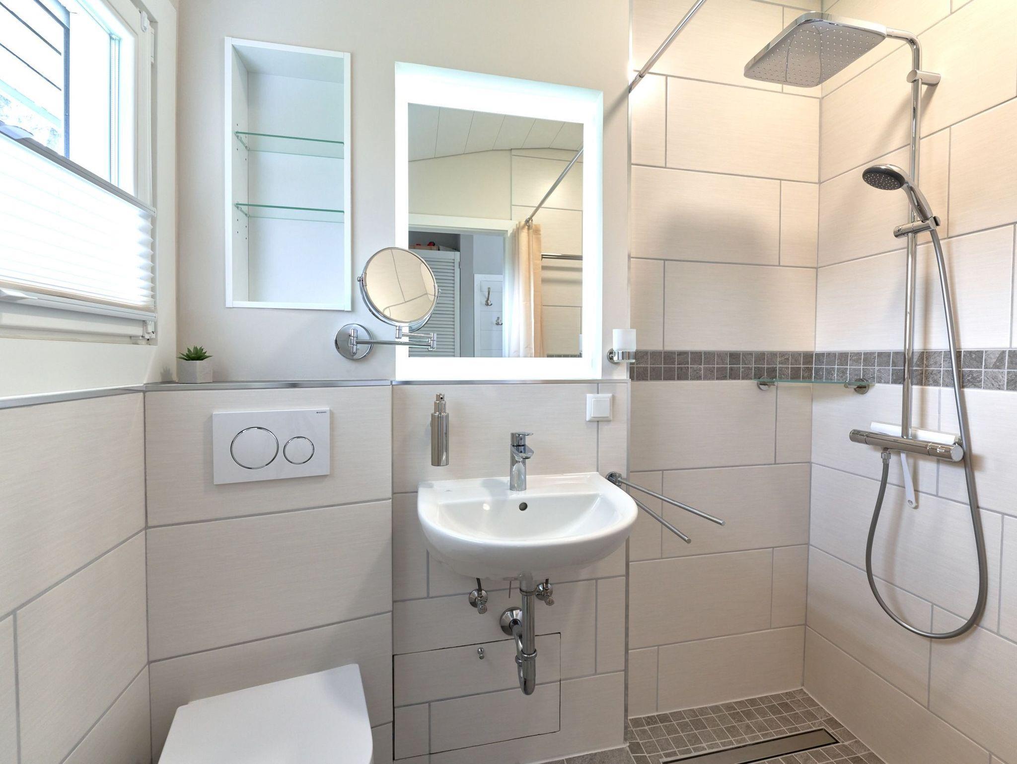 In der modernen, vollausgestatteten Küchenzeile finden Sie alle nötigen Elektrogeräte, inklusive einer Tassimo-Kapselmaschine. Ein Esstisch mit vier Stühlen lädt zum geselligen Beisammensein ein. Das hochwertige Duschbad punktet mit einer bodengleichen Dusche, Regenwaldduschkopf, Handbrause und Fußbodenheizung, während ein erhöhtes Fenster frische Luft hereinlässt.