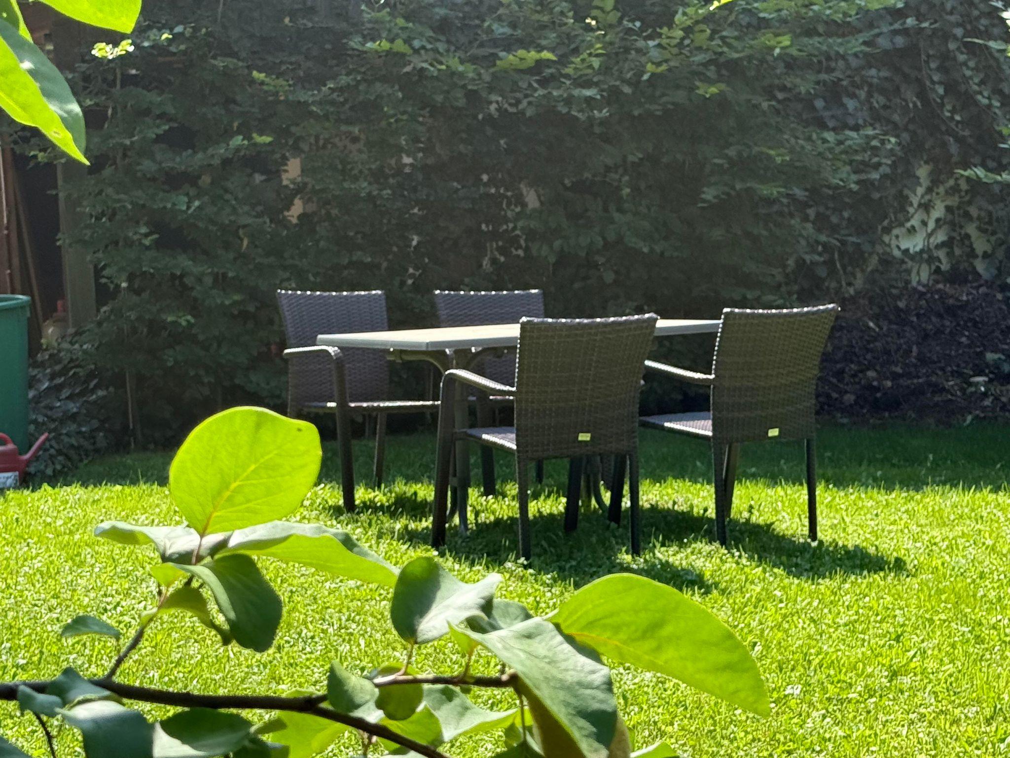 -bietet die Möglichkeit vor der Haustüre für einen entspannten Aufenthalt im Grünen; wird oberhalb begrenzt durch drei Obstbäume