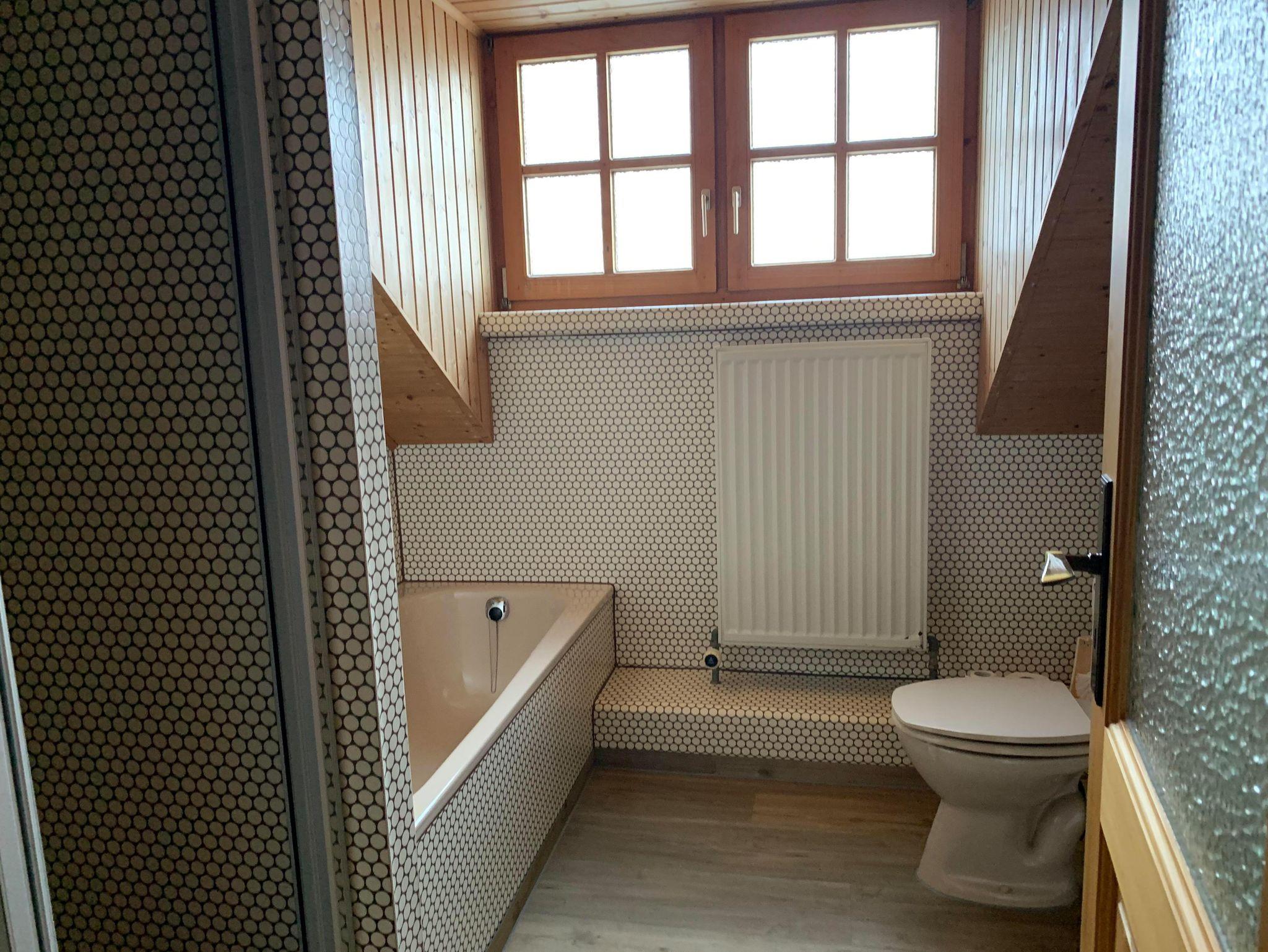 -Bad mit Badewanne, Duschkabine, Waschtisch, WC im 1.OG und extra WC im EG jeweils mit Fenster