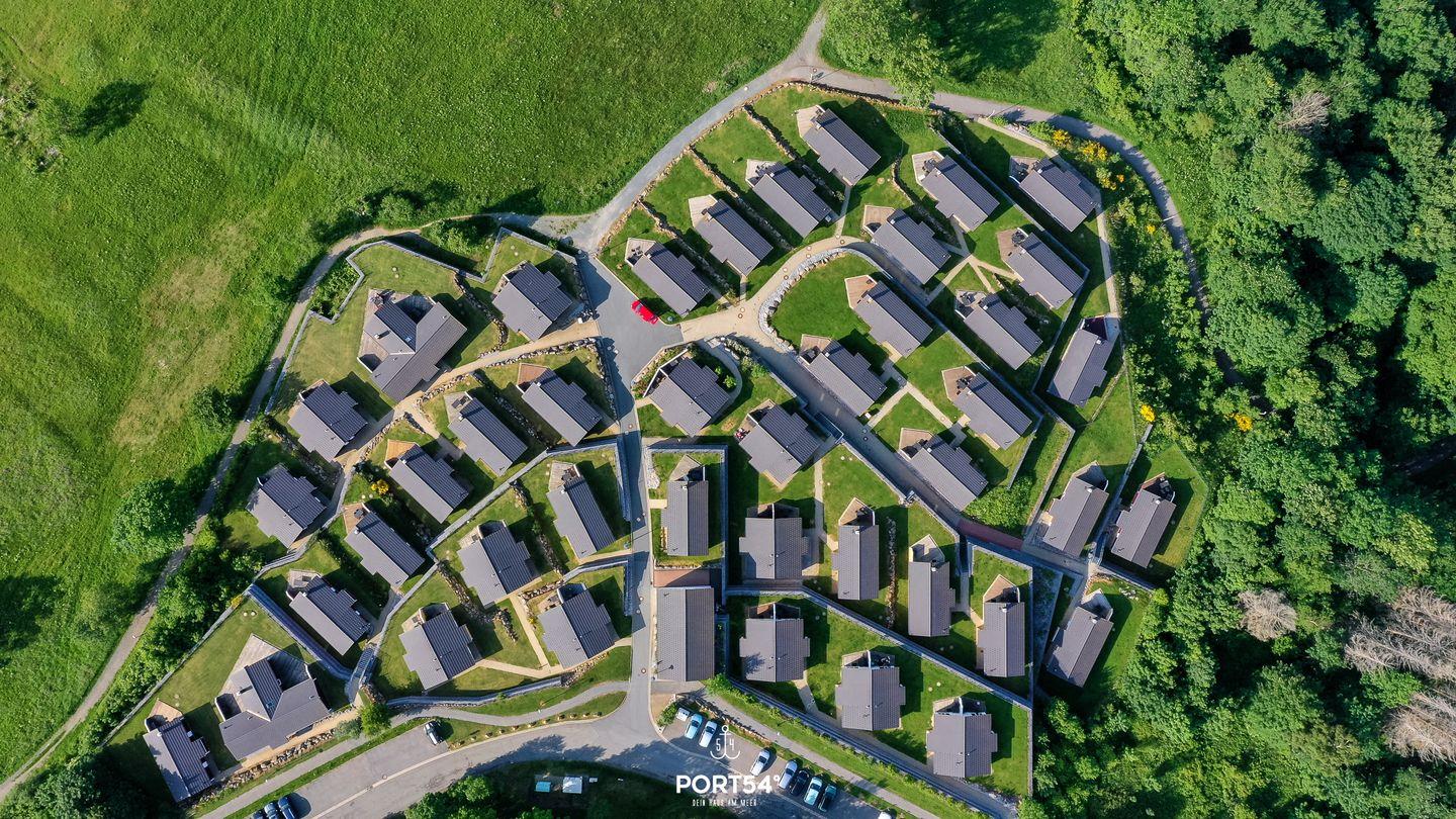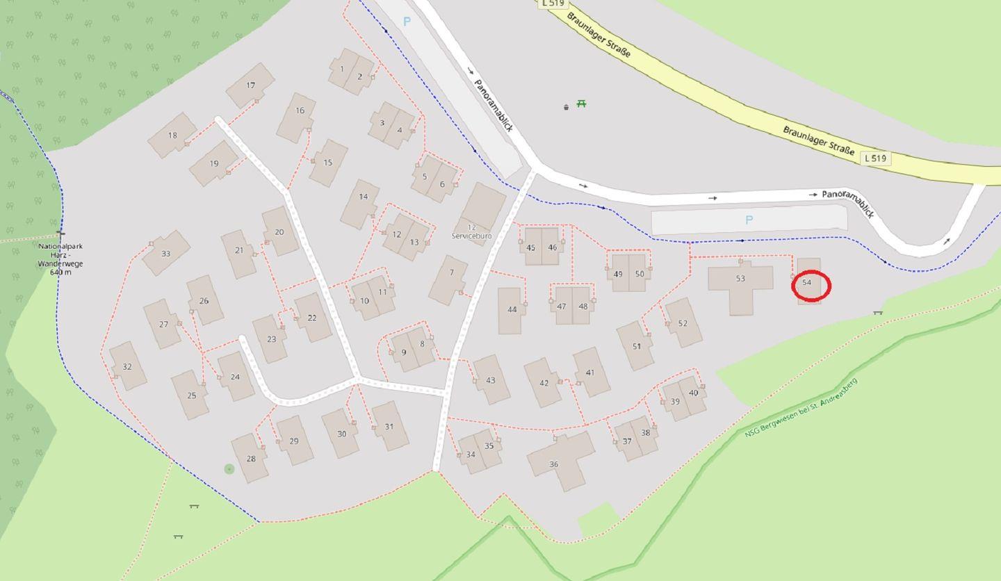 In erstklassiger Lage genießt du einen unverbaubaren Blick auf die Harzer Berglandschaft und die freie Natur, während der eigene Stellplatz im autofreien Park nur wenige Schritte vom Haus entfernt liegt – so beginnt dein Urlaub besonders entspannt.