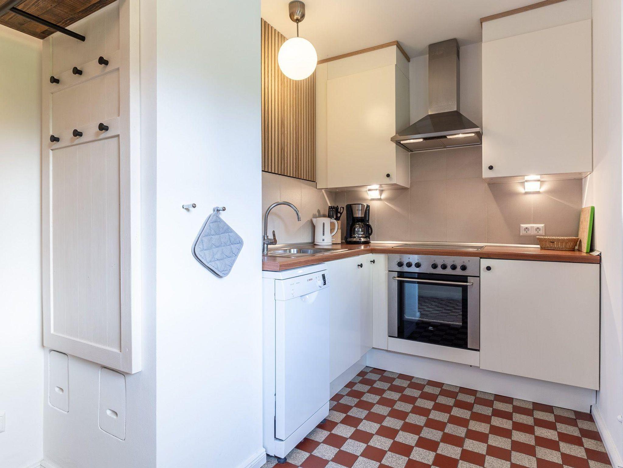 In der Küche können Sie entweder den Herd, Ofen oder die Mikrowelle benutzen. Ihren morgentlichen Kaffee bereiten Sie mit einer herkömmlichen Kaffeemaschine (Größe 4) her oder Sie erhitzen das Wasser für Ihren Tee im Wasserkocher. Die Eiswürfel können im Gefrierfach des Kühlschrankes hergestellt werden oder auch mal eine Pizza gelagert werden.