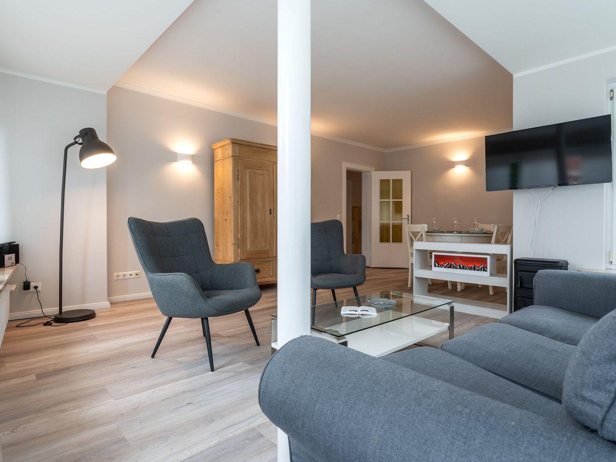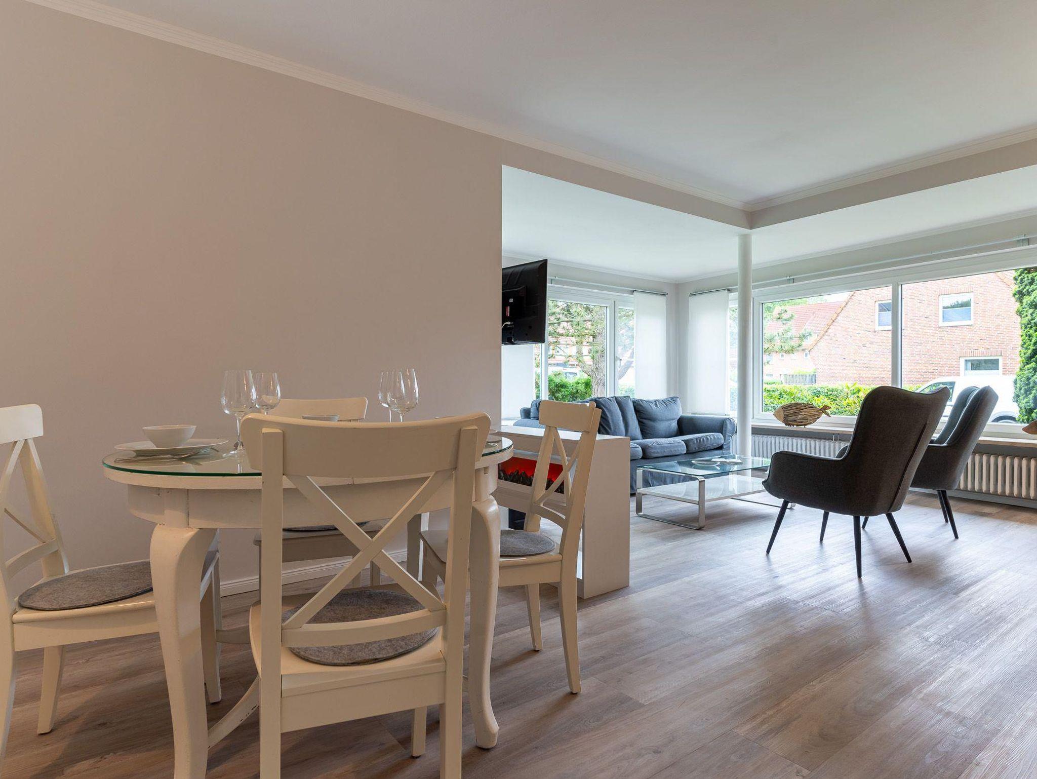 Das Wohnzimmer ist lichtdurchflutet und bietet viel Platz zum Lesen, Homeoffice arbeiten, Essen, Musik hören, oder Fernsehen gucken. Auch Ihren Netflixaccount können Sie hier ansteuern.