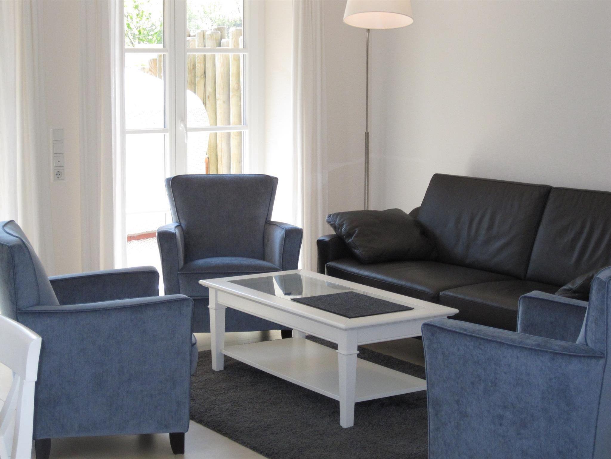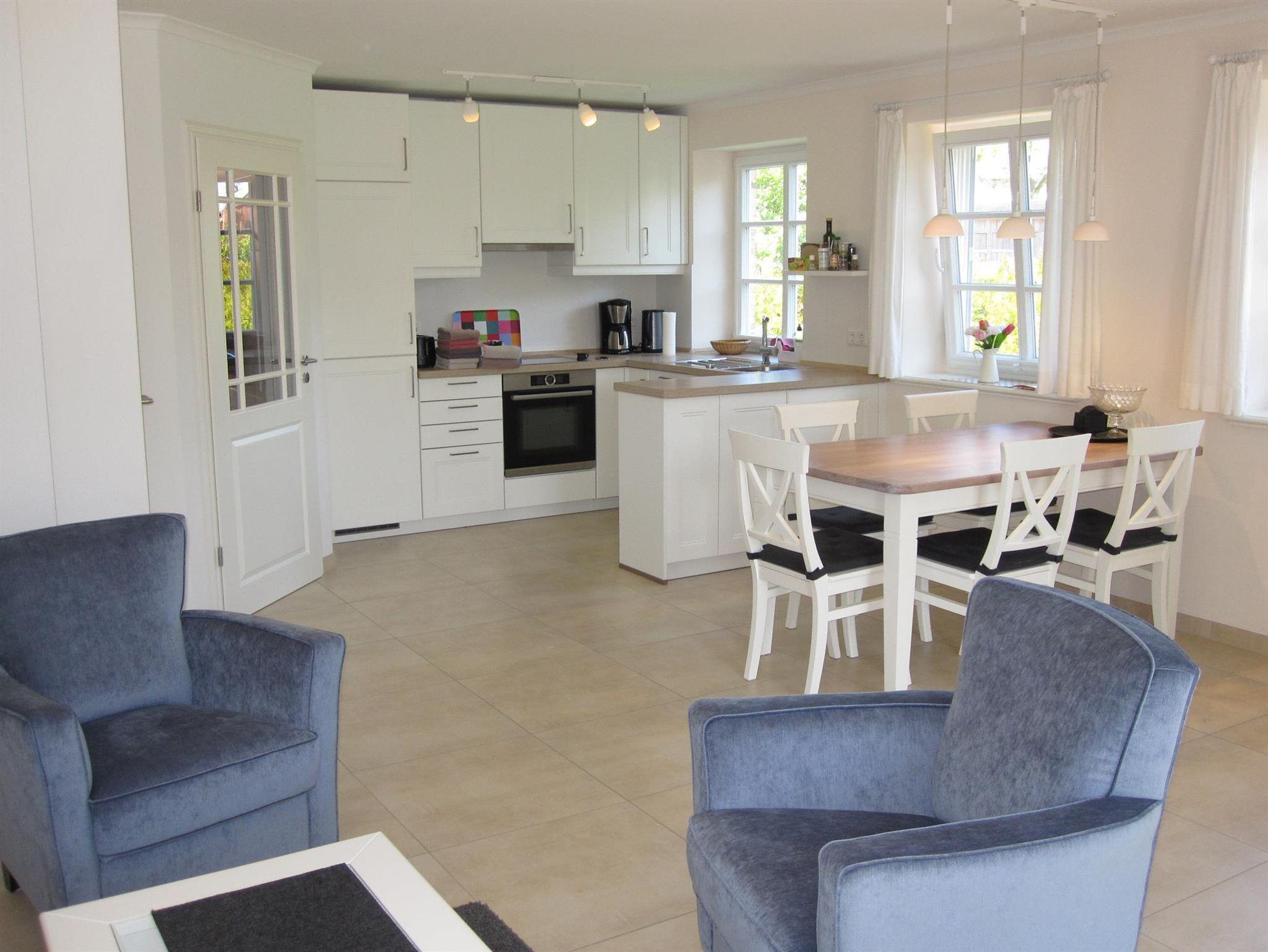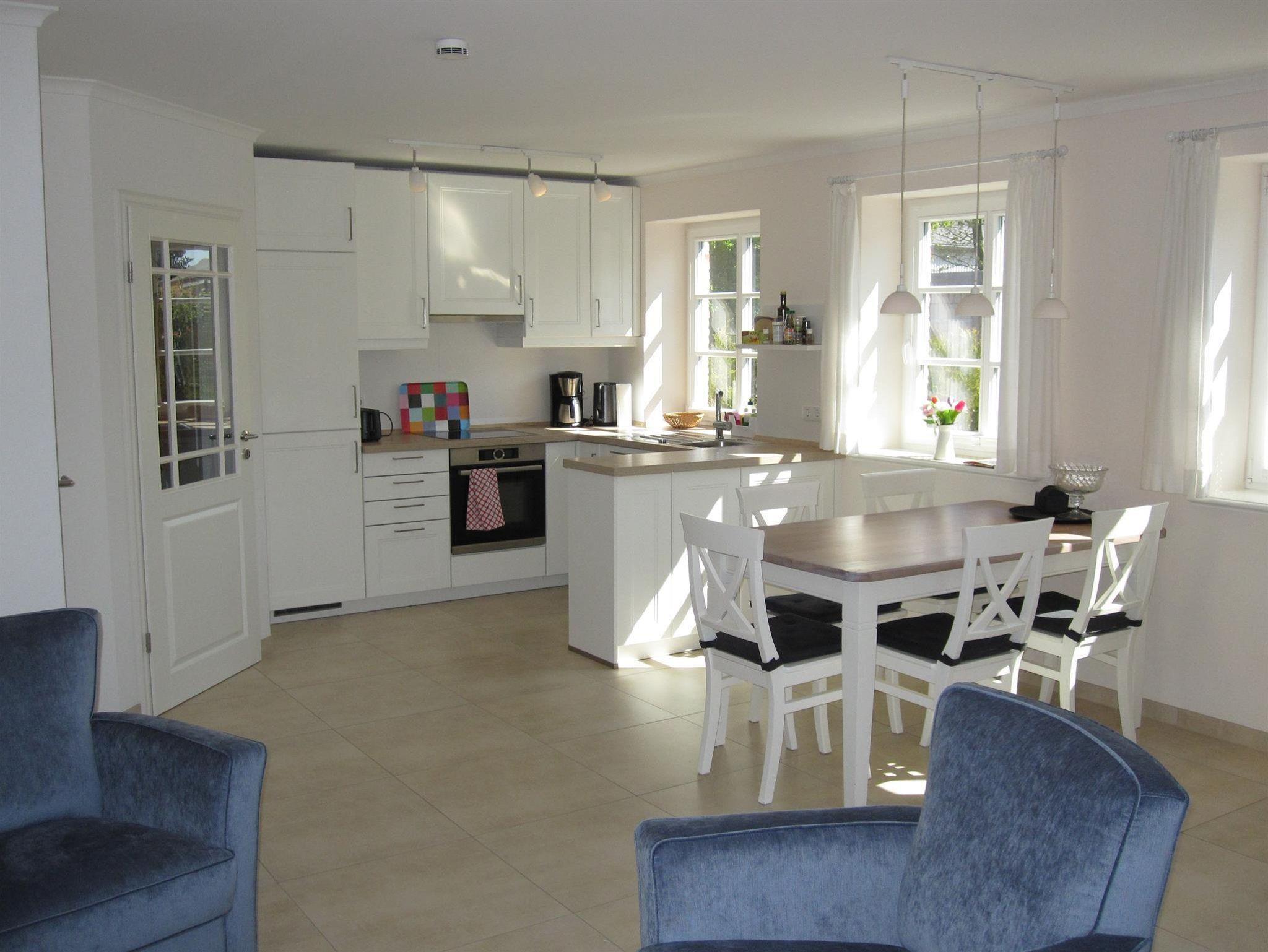 der Essbereich für bis zu 5 Personen geeignet. Blicken Sie aus den großen Panoramafenstern, oder genießen Sie die Sonne im Strandkorb auf der Südterrasse.