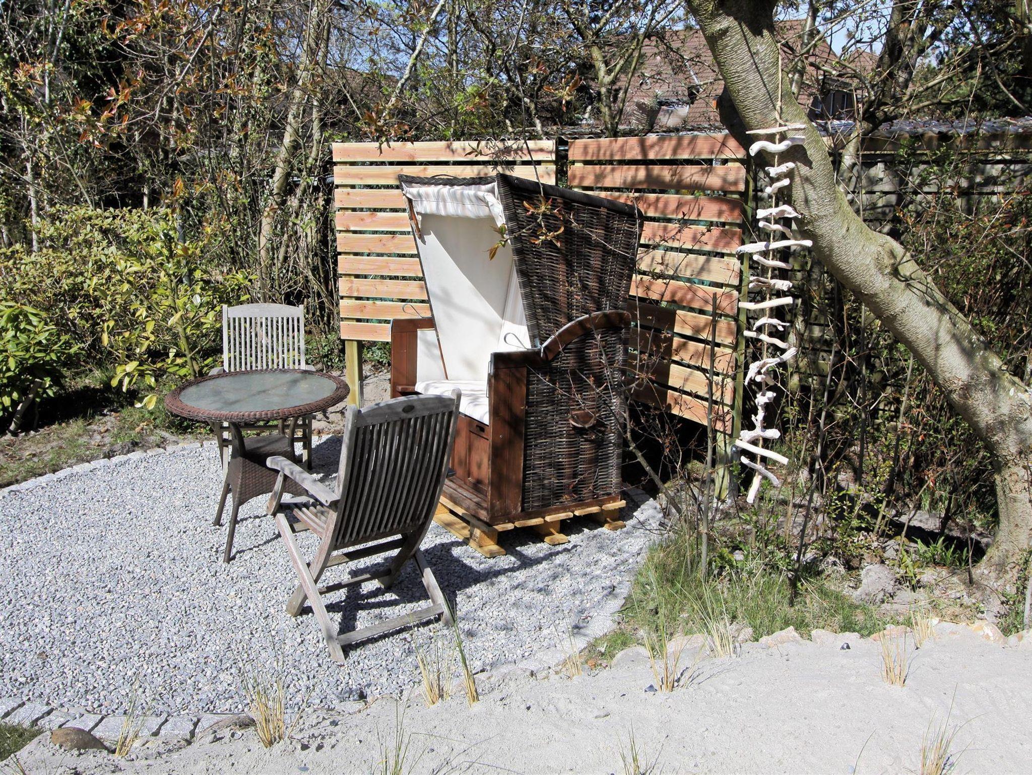 Eine private Terrasse, geschützt hinter einer Düne, lädt zum Erholen und Entspannen ein.