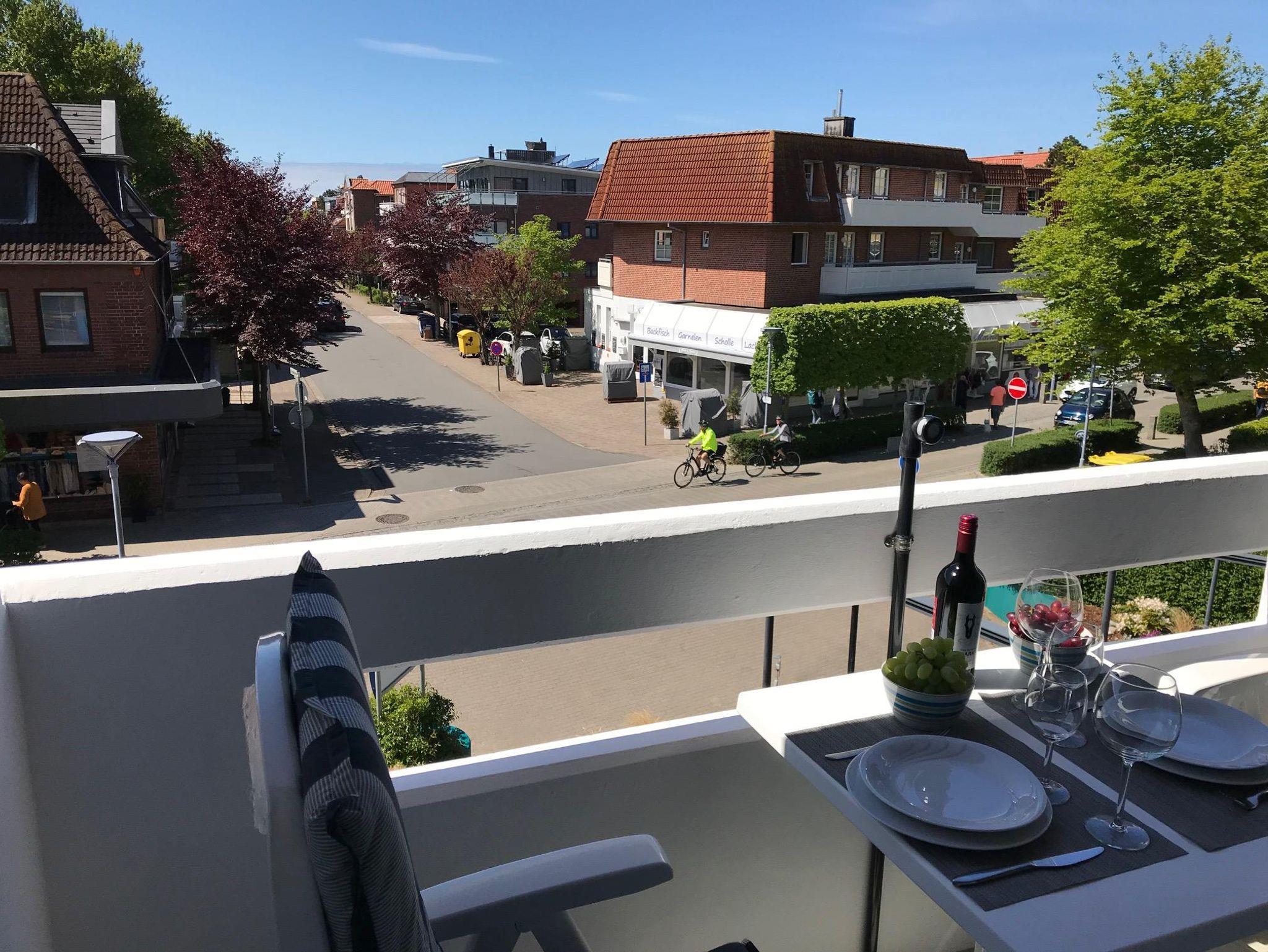 Vom windgeschützten Balkon aus können Sie entlang des Strandläuferwegs bis hin zum Deichvorland mit Strandpromenade blicken oder einfach das bunte Treiben entlang der Flaniermeile mit diversen Restaurants und Läden beobachten.