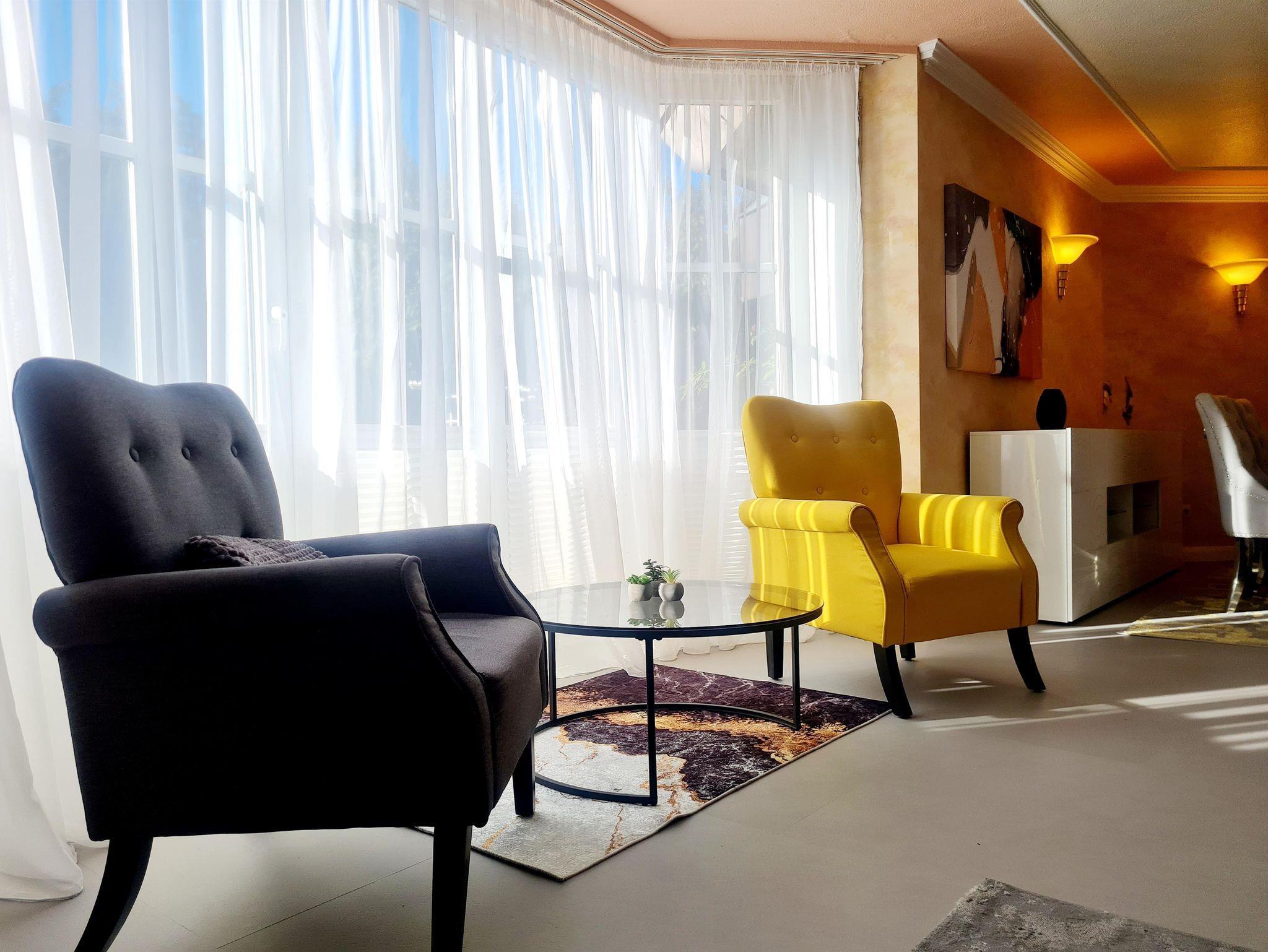 • Helle und stilvolle Räume mit moderner Einrichtung, die eine gemütliche Atmosphäre schaffen.