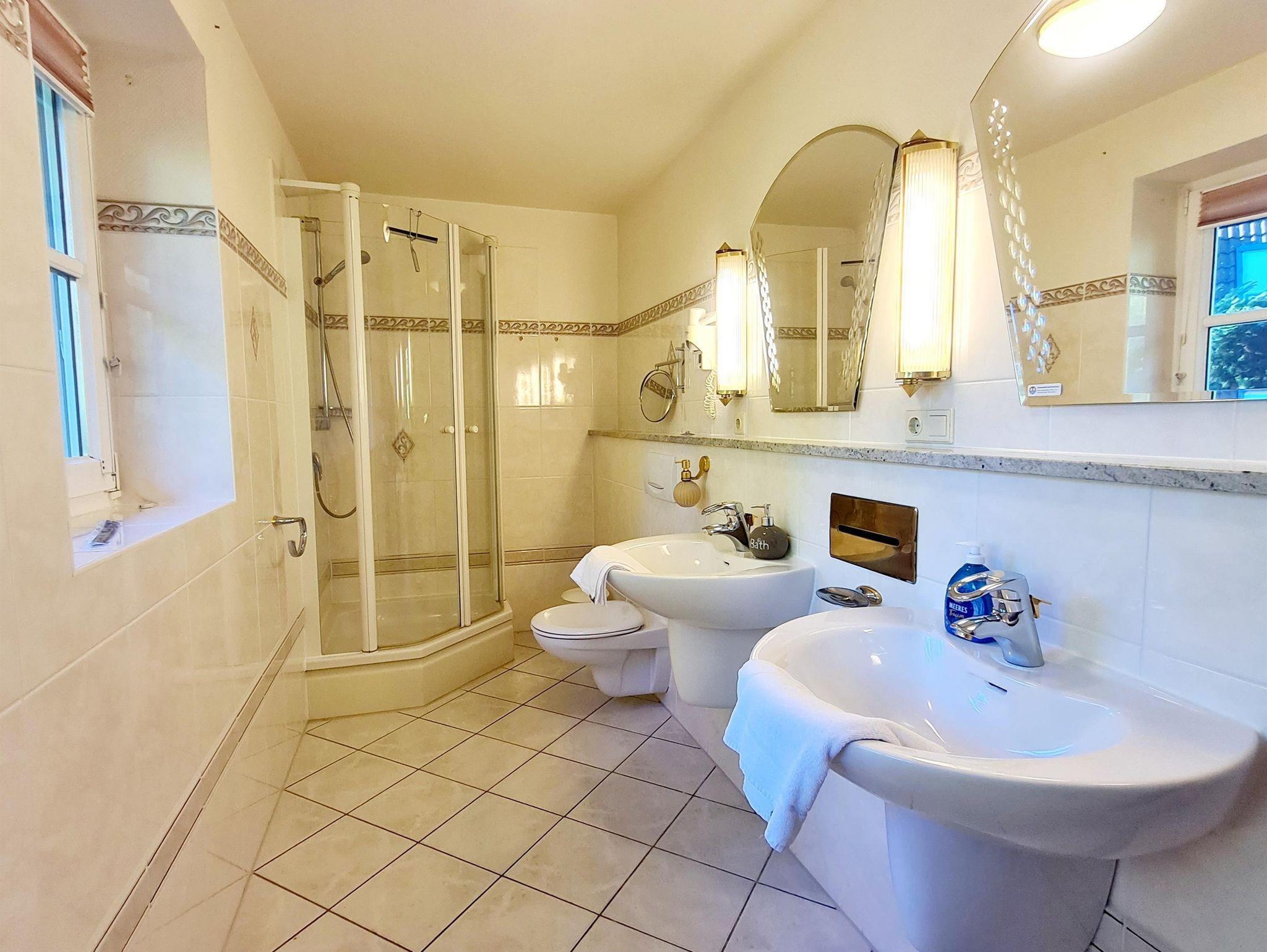 • Ein Badezimmer mit moderner Ausstattung, das pure Entspannung bietet.