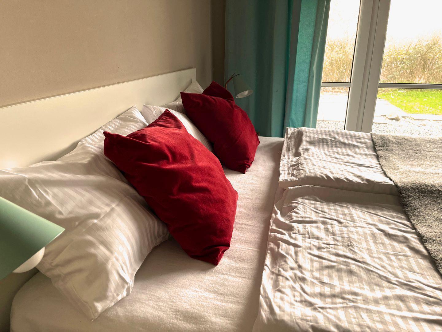 Ferienwohnung in Reetdachhaus mit 4 Wohneinheiten, im Erdgeschoss, ca. 52 qm. Wohnraum mit Küchenzeile, 2 Schlafzimmer (1 Doppelbett, 1 französisches Bett), Schlafcouch im Wohnraum, Bad mit Dusche. Ausgestattet mit Geschirrspüler, Backofen, Mikrowelle, WLAN. Terrasse mit Gartenmöbeln, PKW-Stellplatz, direkter Zugang zum Garten, Gemeinschaftsgarage für Fahrräder, Bollerwagen etc. Gemeinschaftssauna im Gartenhaus. Hunde auf Anfrage erlaubt. Gemeinschaftswaschmaschine. Grillen und offenes Feuer nicht gestattet. Das Laden von elektrisch betriebenen PKWs oder Hybridfahrzeugen sowie das Einstellen von Wohnwagen und Wohnmobilen mit Anschluss an den Hausstrom ist nicht zulässig.