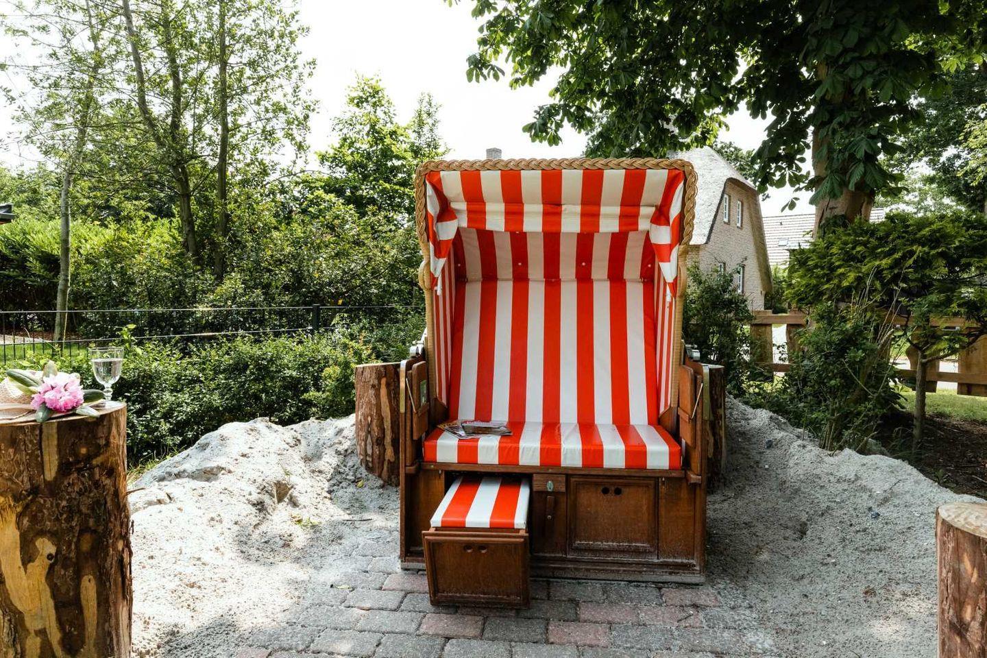 Der große Gemeinschaftsgarten mit Strandkorb bietet eine alternative Entspannungsmöglichkeit zur Terrasse. Die Lage ist absolut ruhig und dennoch nur 7 Fußminuten vom Badzentrum und etwa 15 Fußminuten vom Ordinger Strand entfernt.