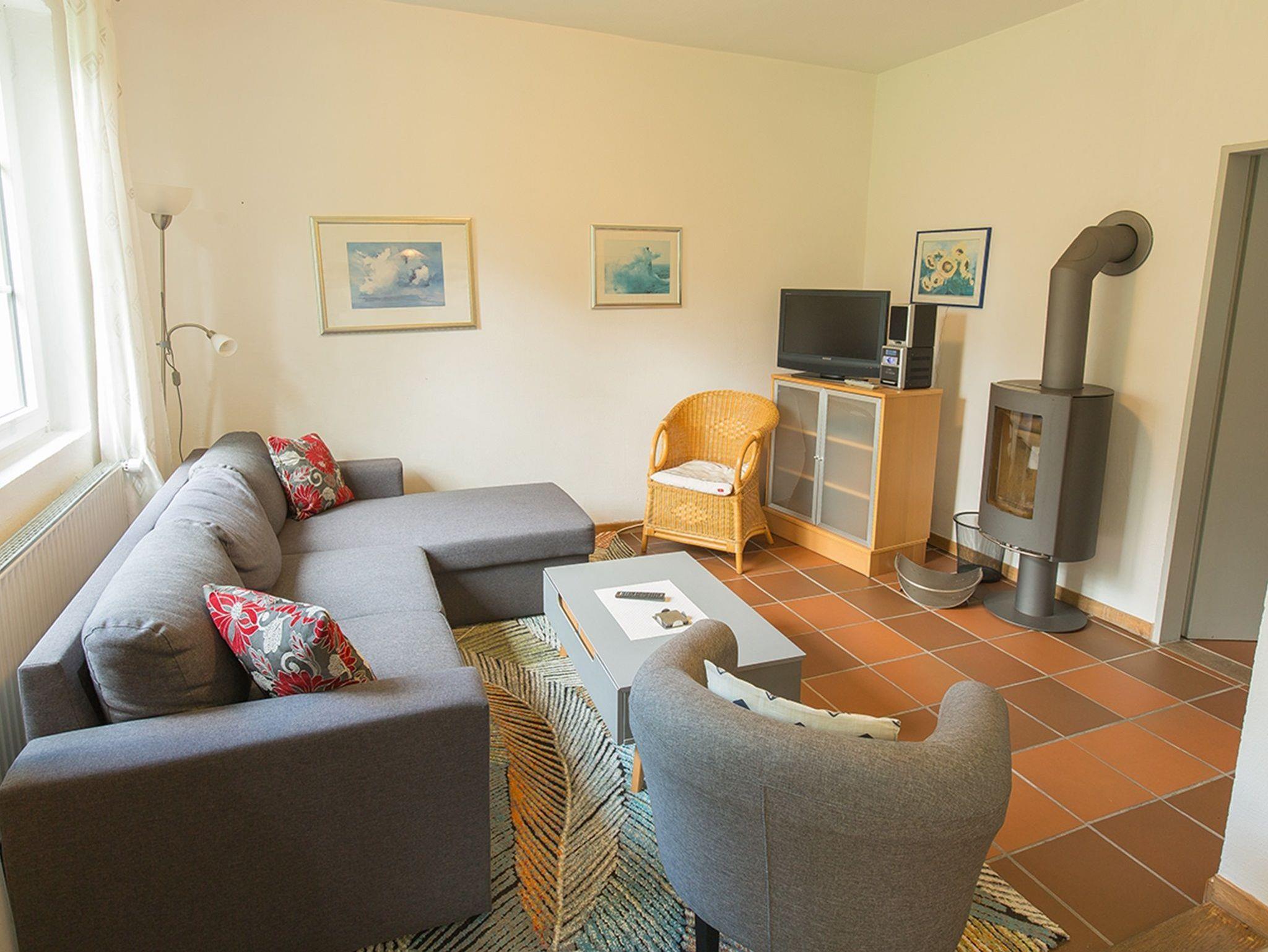 Bis zu fünf Gäste haben Platz in der hundefreundlichen EG-Wohnung mit Haus-Charakter, 60 qm mit Terrasse auf zwei Etagen inklusive Gemeinschaftsnutzung der - unbeheizten - Poolhalle , der Sauna und der überdachten Spielscheune. Die ebenerdig zugängliche Wohnung befindet sich an der Nordseeküste mitten im Grünen auf unserem Reitlandhof Franke in Stadland.