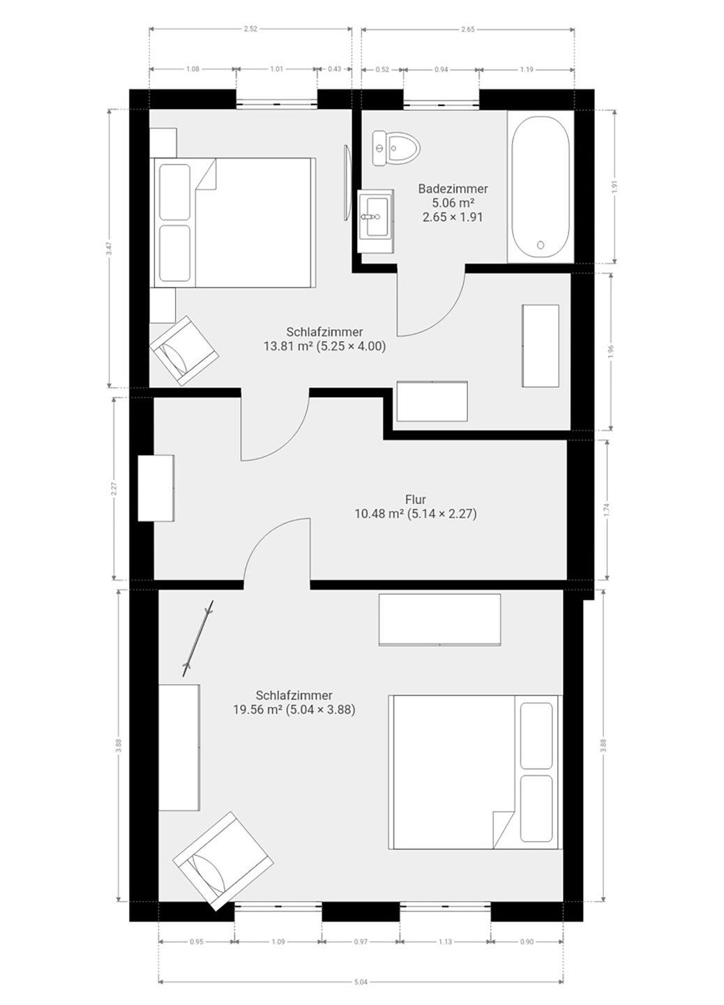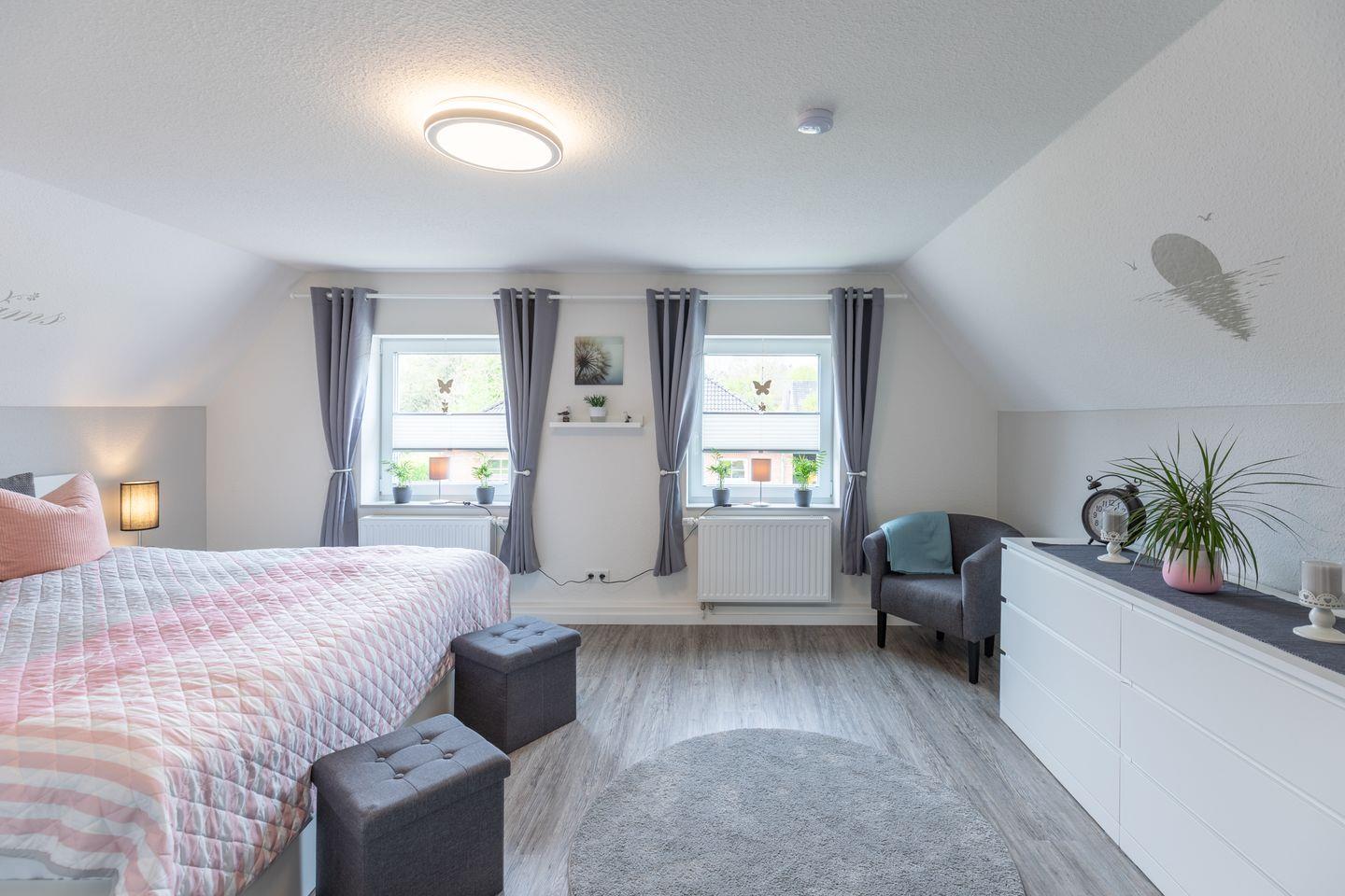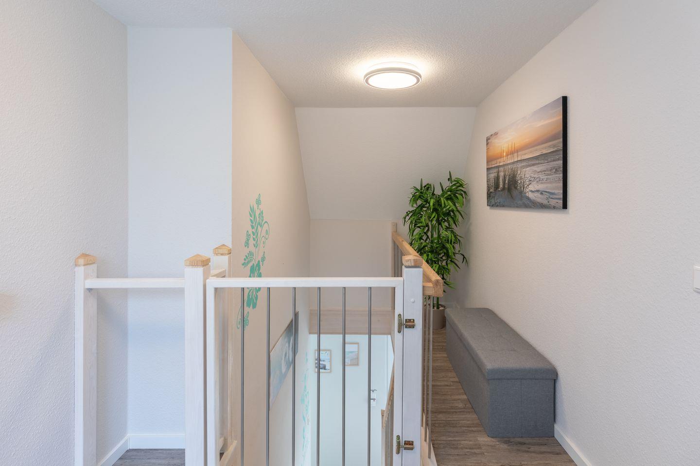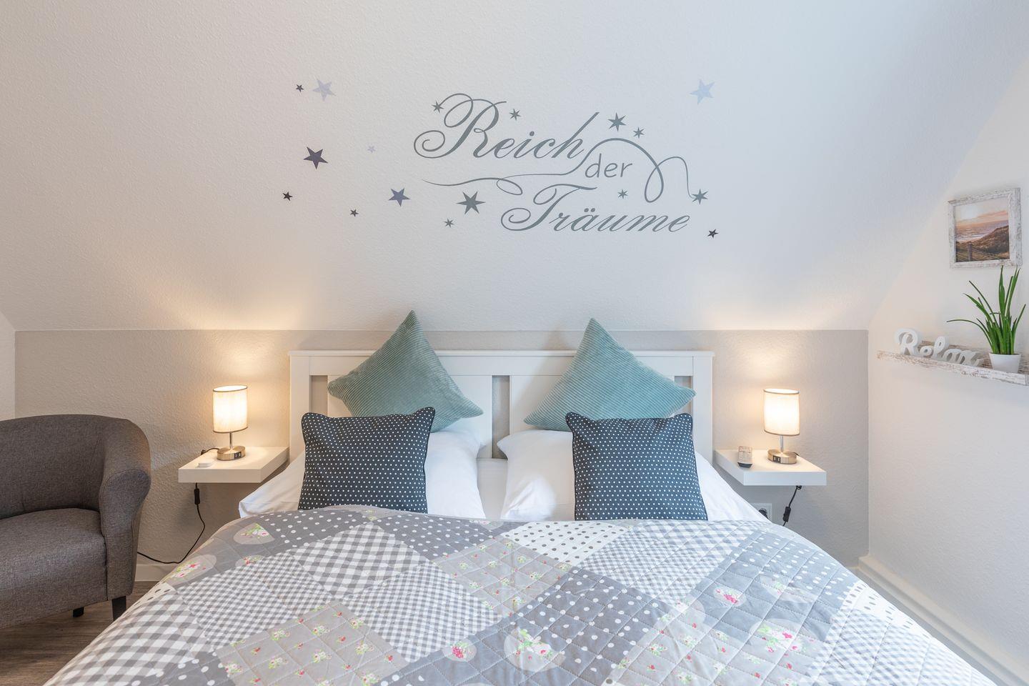 Über eine Treppe erreichen Sie die beiden gemütlichen Schlafzimmer im ersten Stock. Im ersten Schlafzimmer steht Ihnen ein komfortables Doppelbett (180 × 200) zur Verfügung. Das zweite Schlafzimmer ist mit einem Doppelbett (160 × 200) ausgestattet und verfügt über ein eigenes Bad mit Waschbecken, WC und Badewanne. Beide Schlafzimmer sind mit einem Flachbildfernseher ausgestattet.