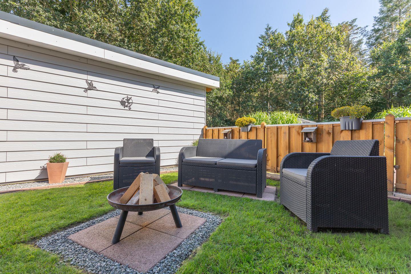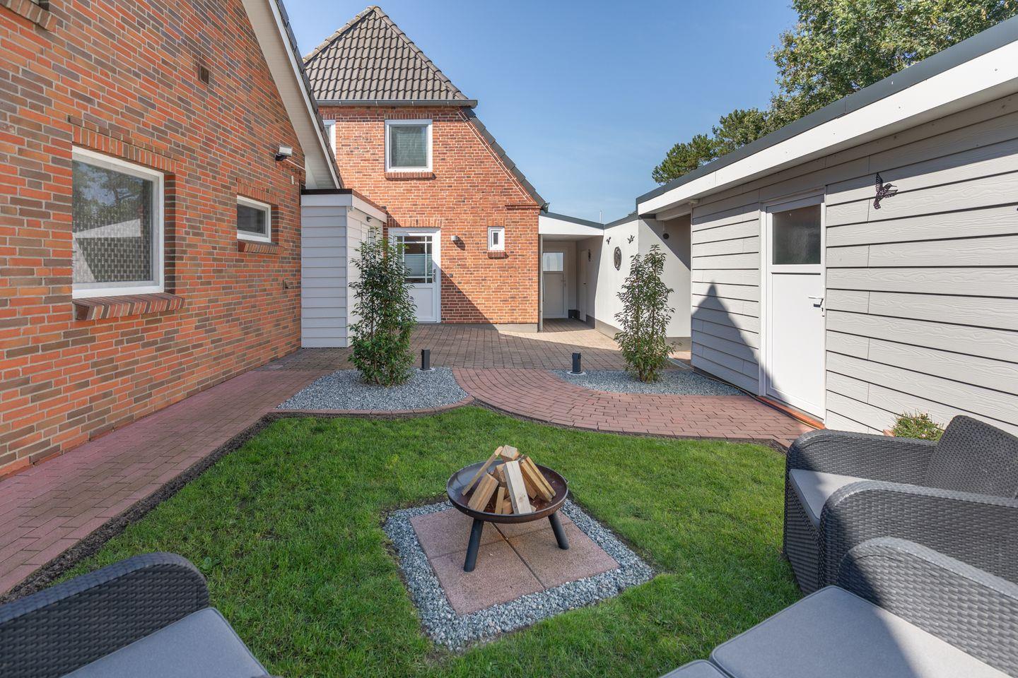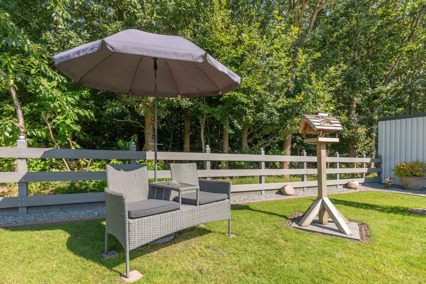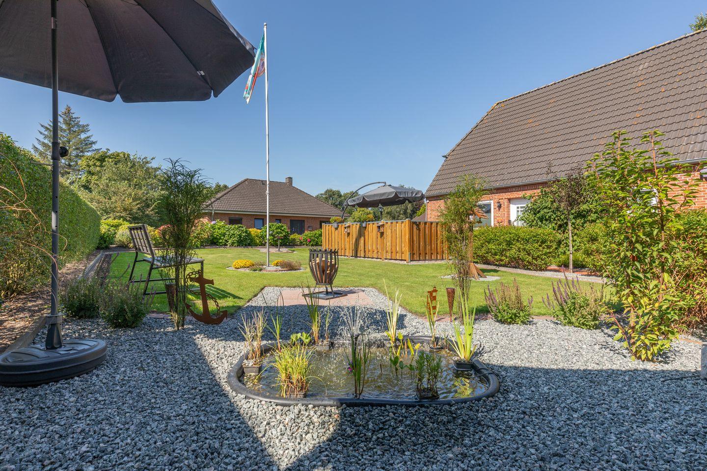 Auf der idyllischen Terrasse mit Strandkorb und Sitzbereich mit Sonnenschirm können Sie Ihren Urlaubstag mit Ihren Lieben entspannt ausklingen lassen.