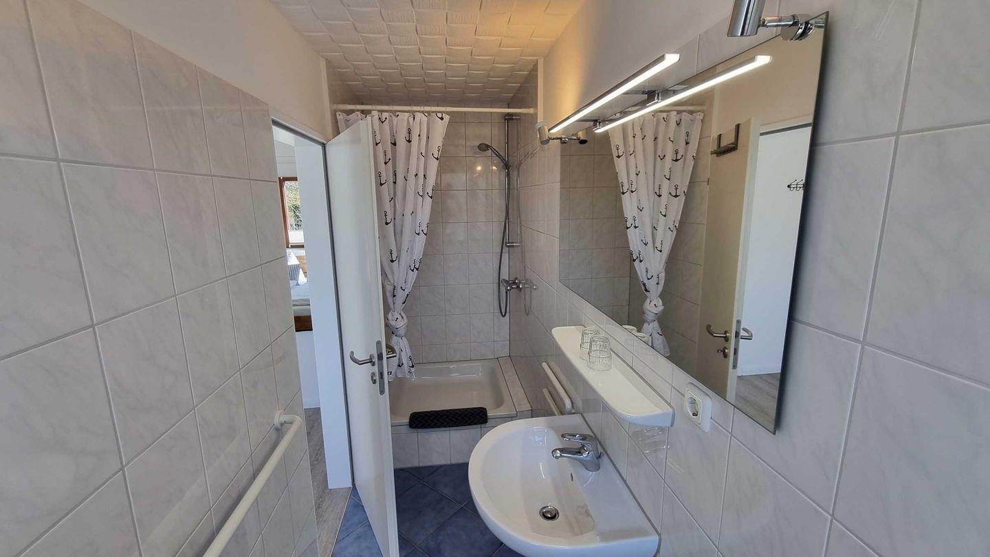 Die neu renovierte Ferienwohnung Gröde befindet sich im Obergeschoss eines Ferienhauses. In der komplett ausgestatteten Küchenzeile können sie ihre Mahlzeiten zubereiten. Das große Schlafzimmer ist mit einem Doppelbett ausgestattet und hat direkten Zugang zum Bad.Das Tageslichtduschbad ist zweckmäßig eingerichtet. Im Wohnzimmer befindet sich ihr Eßtisch , TV und kleines Sofa. Eine Waschmachine steht ihnen im Hauswirtschaftsraum gegen eine Gebühr zur Verfügung.