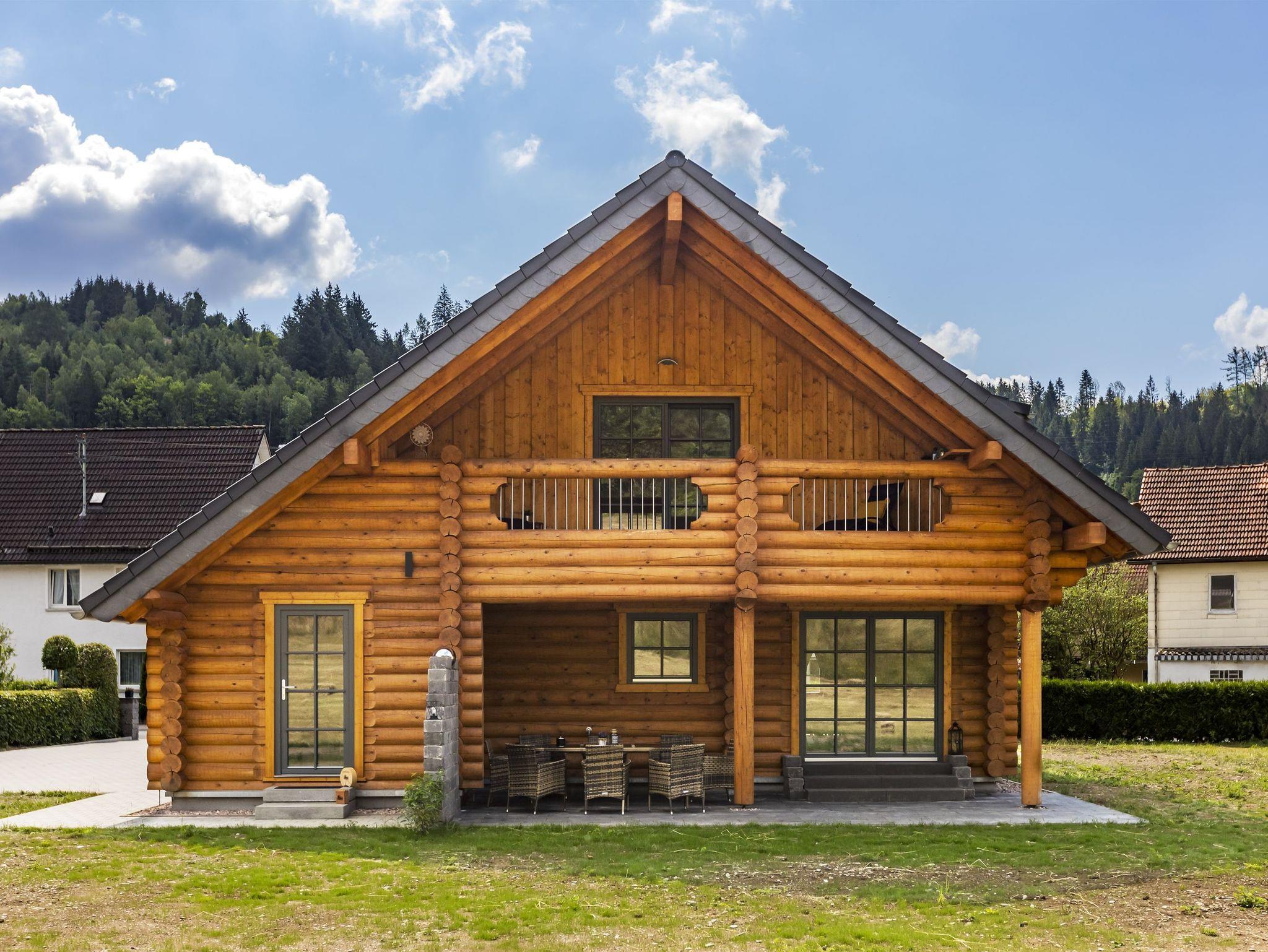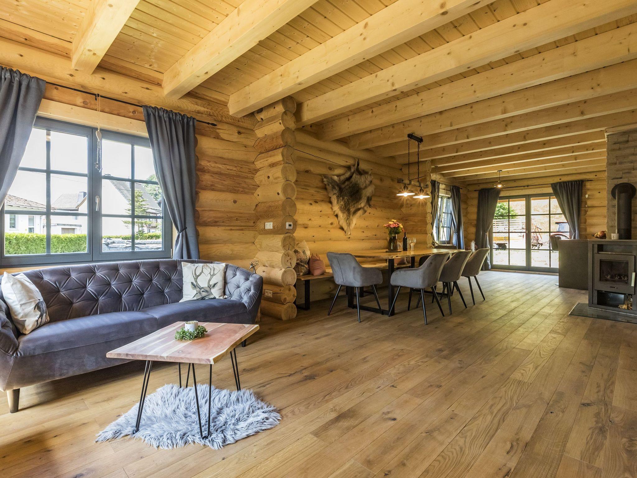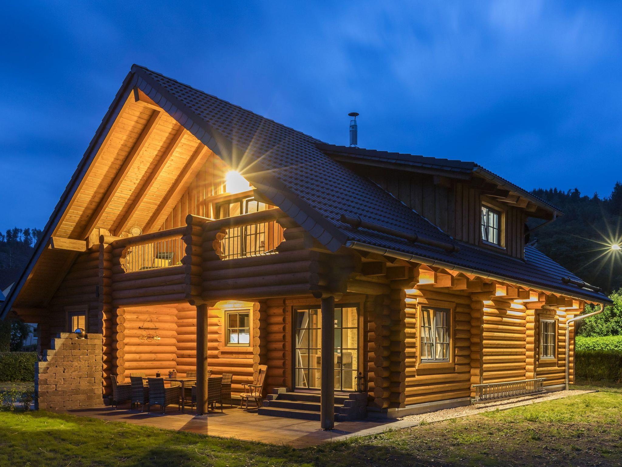 Unser neugebautes Luxus-Ferienhaus in Rundstammbauweise mit 153m² Wohnfläche über zwei Etagen bietet Platz für 1-10 Personen. Genießen Sie das Besondere. Ein Haus wie aus dem Bilderbuch mit einer Wohnqualität die seinesgleichen sucht. Das gemütliche Wohnzimmer mit großem Flachbild-TV lädt zum verweilen ein. Die komplett ausgestattete Küche mit