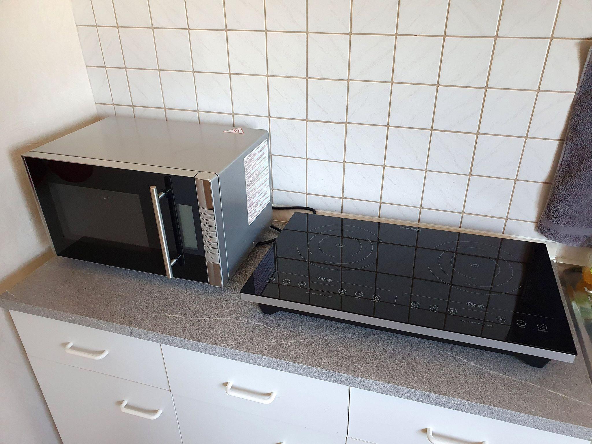 Küche: Kochen Sie Ihre Lieblingsgerichte in unserer voll ausgestatteten Küche! Mit einer Mikrowelle-/Grillkombination, Kühlschrank mit Gefrierfach, Wasserkocher, Kaffeemaschine, Toaster und Eierkocher sind Ihrer Kreativität keine Grenzen gesetzt. Das Induktionskochfeld (2 Felder) sorgt für schnelles und sicheres Kochen. Geschirrhandtücher und Geschirr sind ebenfalls vorhanden ? einfach einziehen und loslegen!
