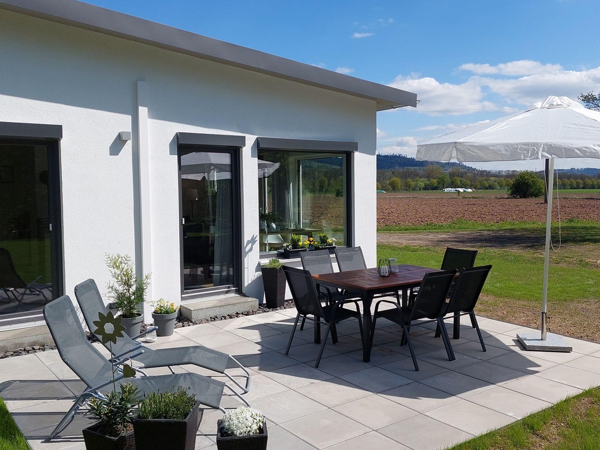 Freuen sie sich auf erholsame Tage in unserem neu erbauten, voll ausgestatteten Ferienbungalow in der idyllischen Gemeinde Stockheim an der Bier- und Burgenstraße in Oberfranken. Das 900-Seelen-Dorf Neukenroth liegt eingebettet von bewaldeten Bergen des Frankenwaldes im breiten Haßlachtal. Es bietet einen perfekten Rückzugsort für Naturliebhaber und Erholungssuchende fernab von Hektik und Lärm. Die liebevoll und modern eingerichtete Unterkunft befindet sich in ruhiger Lage am Ortsrand mit freiem Blick auf die umgebende Natur.