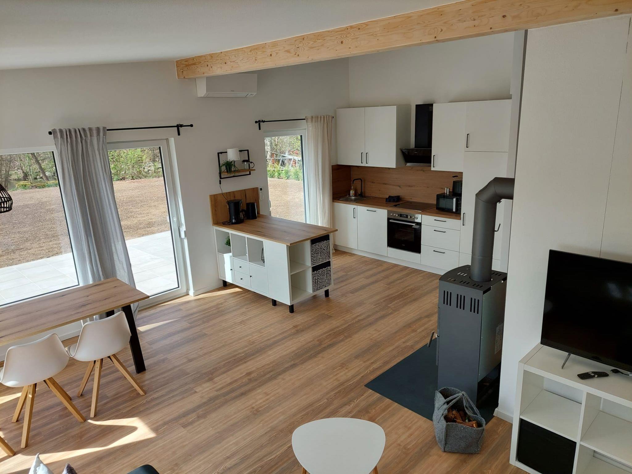 Das Ferienhaus verfügt über zwei Klimaanlagen, die alternativ zum stilvollen Schwedenofen wohlig warm heizen oder an heißen Sommertagen für angenehme Schlaftemperaturen sorgen.