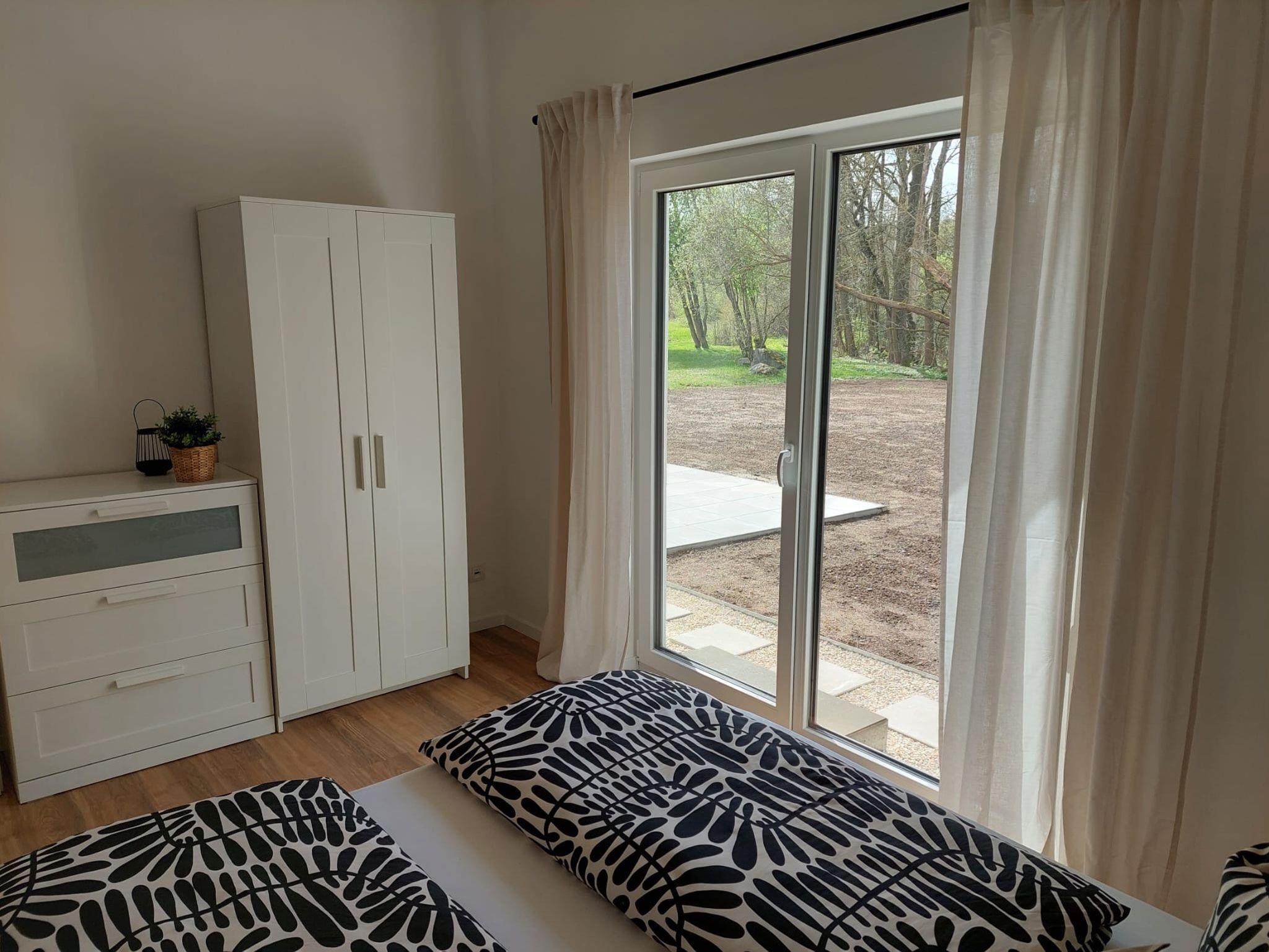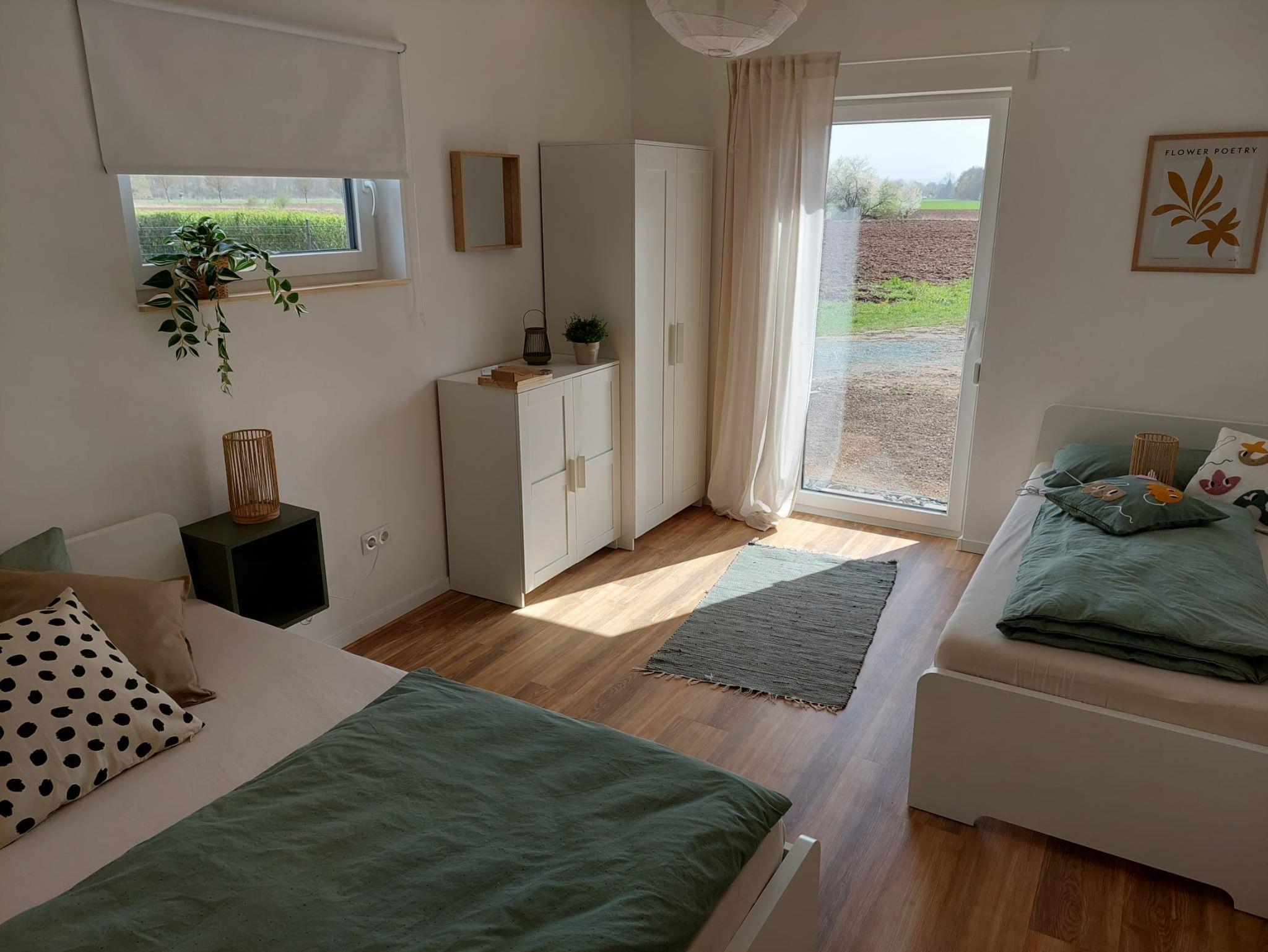 Unser Ferienhaus verfügt über zwei Schlafzimmer und bietet Platz für bis zu sieben Personen. Im Schlafzimmer steht ein Doppelbett mit 180x200m (bei Bedarf ein Kleinkinderbett), im Kinderzimmer ein Bett mit 140x200m und ein weiteres mit 90x200m. Bei Bedarf bietet im Wohnbereich ein ausziehbares Sofa sogar nochmals Platz für mindestens einen weiteren Gast.
