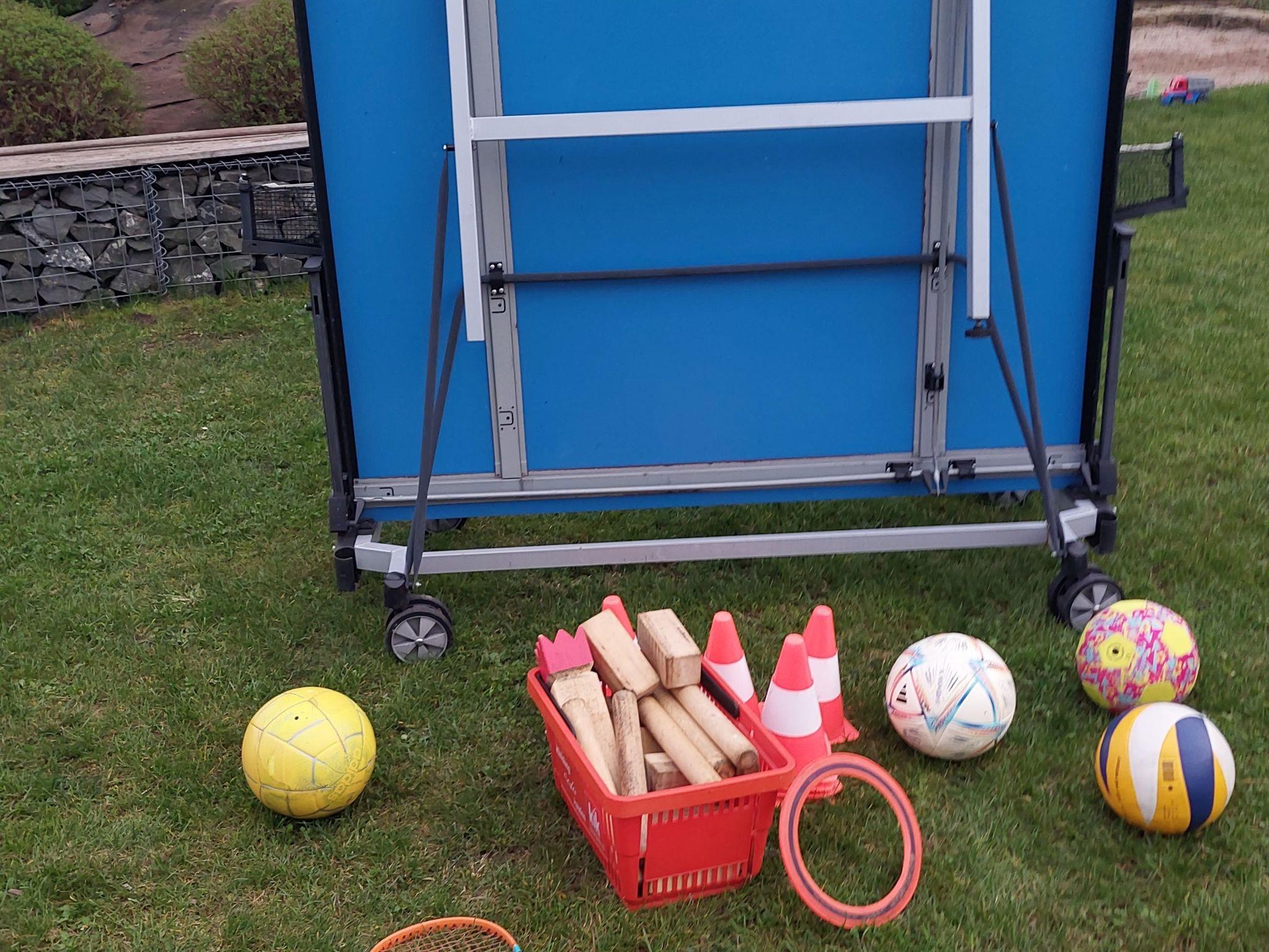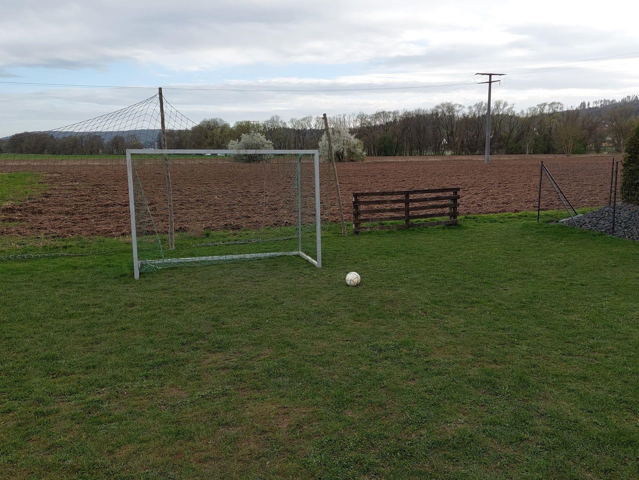 Die große Terrasse mit bequemen Gartenmöbeln sowie ein Lagerfeuerplatz und Grill laden zu gemütlichen Abenden im Freien ein. In den Sommermonaten sorgt ein aufstellbarer Gartenpool für die nötige Erfrischung. Sandkasten, Bolzplatz und einige Fahrzeuge wie Kettcar, Traktor, Scooter und ein Kinderfahrrad lassen bei den Kiddies keine Langeweile aufkommen. Ihr Auto parken Sie direkt vor der Haustüre und evtl. selbst mitgebrachte Fahrräder stellen Sie sicher gegenüber in einer Garage ab.