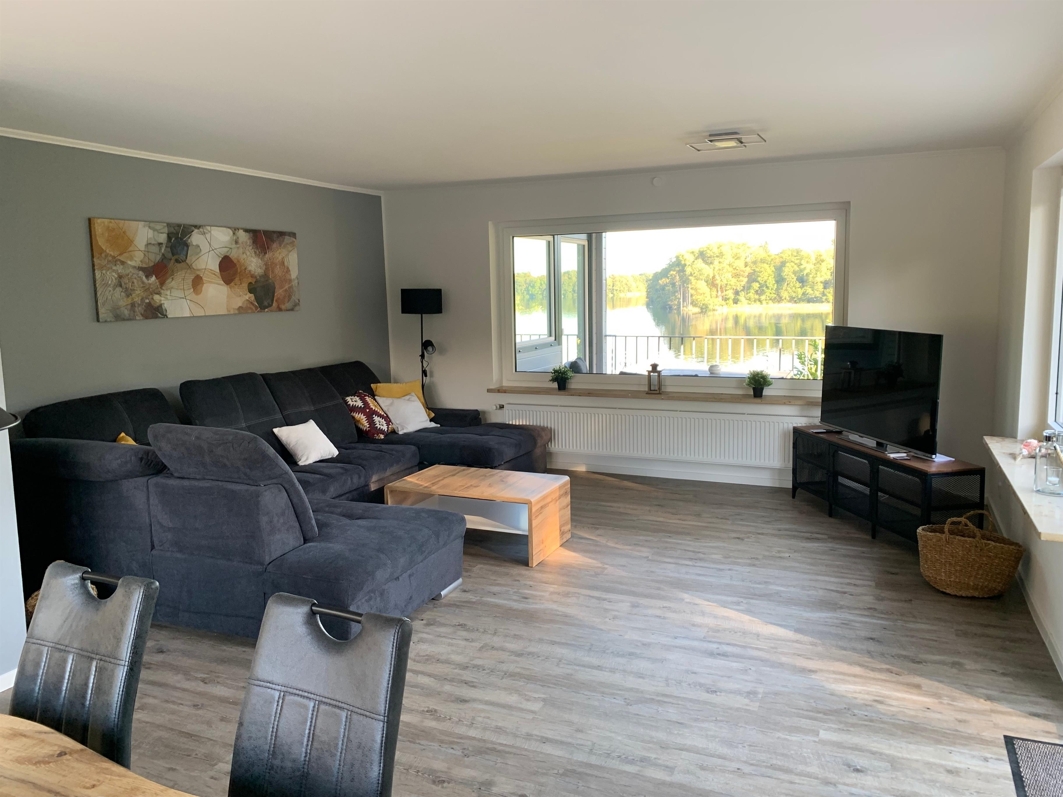 Die Unterkunft bietet eine unvergleichbare Aussicht auf den Stocksee, zu dem man durch das Grundstück direkten Zugang erhält. Der großzügige Garten von dem aus zum Badesteg sowie Ruderboot gelangt werden kann, ist mit modernen Lounge- und Gartenmöbeln ausgestattet.