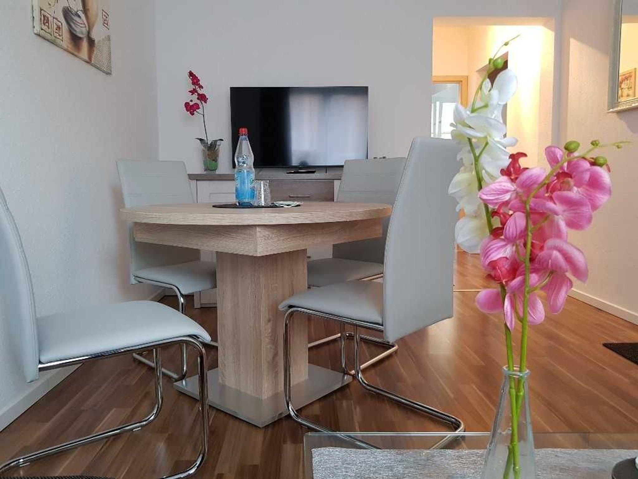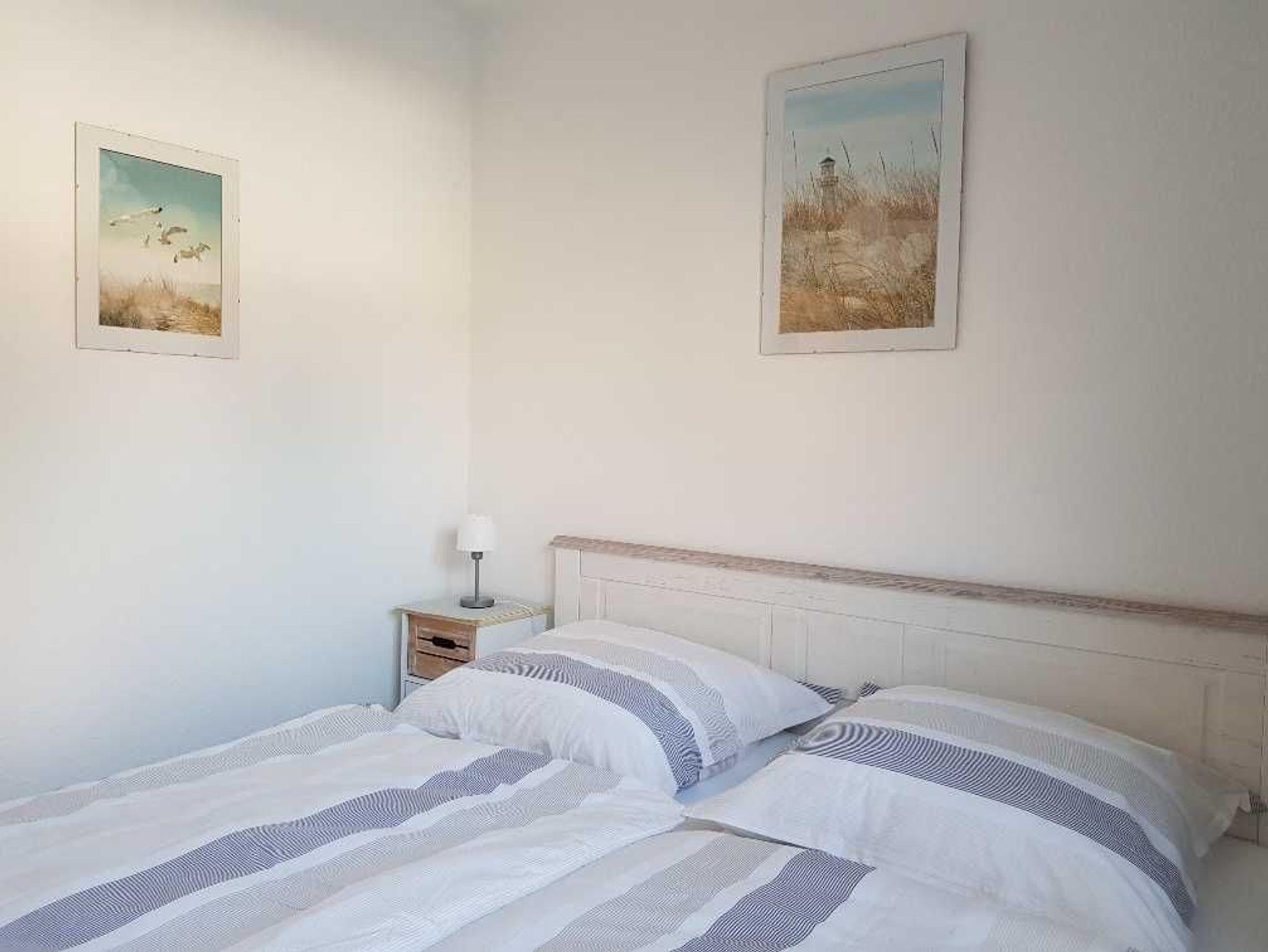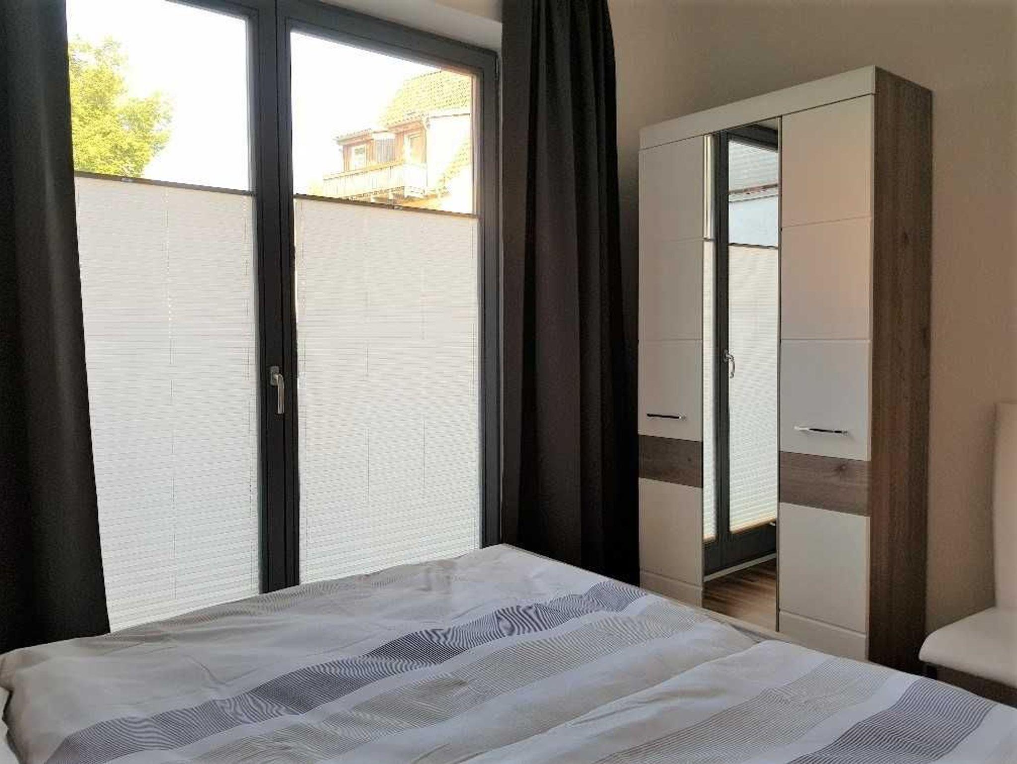Die Nichtraucher-Ferienwohnung liegt im Erdgeschoß (nur 1 Stufe) eines Stadthauses. Sie verfügt über ein modern-komfortabel eingerichtetes Wohnzimmer mit Laminatboden, großzügiger Couchecke (mit Schlaffunktion), Kommode mit Flachbild-TV sowie Essgarnitur. Das Schlafzimmer besticht durch seinen Ausblick auf den Kirchturm der Marienkirche und ist mit Laminat, Doppelbett (2 getrennte Matratzen 0,90 x 2,00m) mit Topperauflagen und Kleiderschrank ausgestattet. Bettwäsche und Handtücher sind in der Erstausstattung im Preis enthalten. Zusätzliche Bandscheibenkissen liegen bereit.