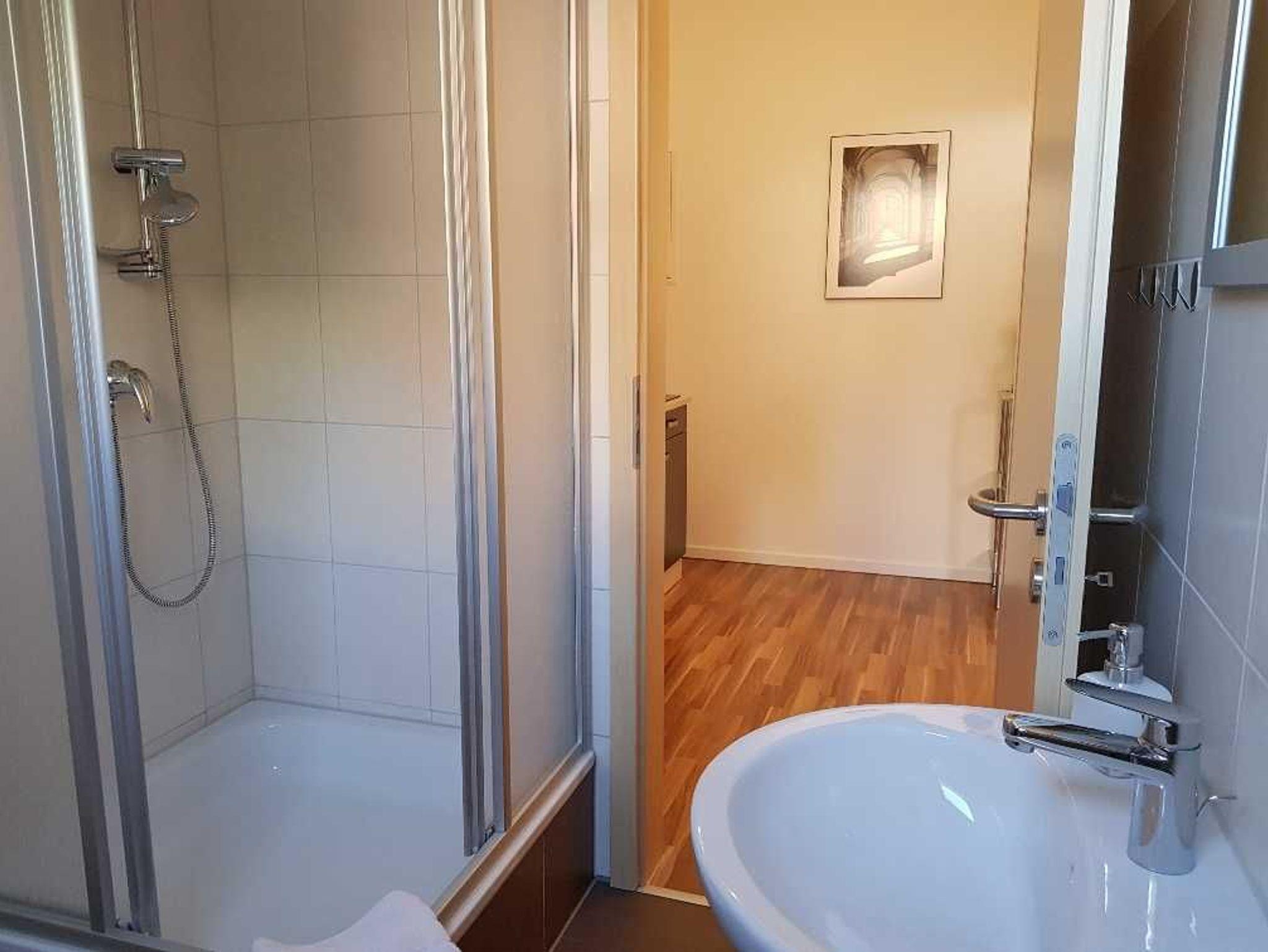 Die geflieste Küche ist mit einem Geschirrspüler, Mikrowelle, Herd mit Ceranplatten, Kühlschrank mit Gefrierteil, Kaffeemaschine und Wasserkocher bestückt. Ferner werden Spülmittel und Geschirrtücher zur Verfügung gestellt. Das Bad mit Dusche (Duscheinstieg) und WC hat Tageslicht vorzuweisen.