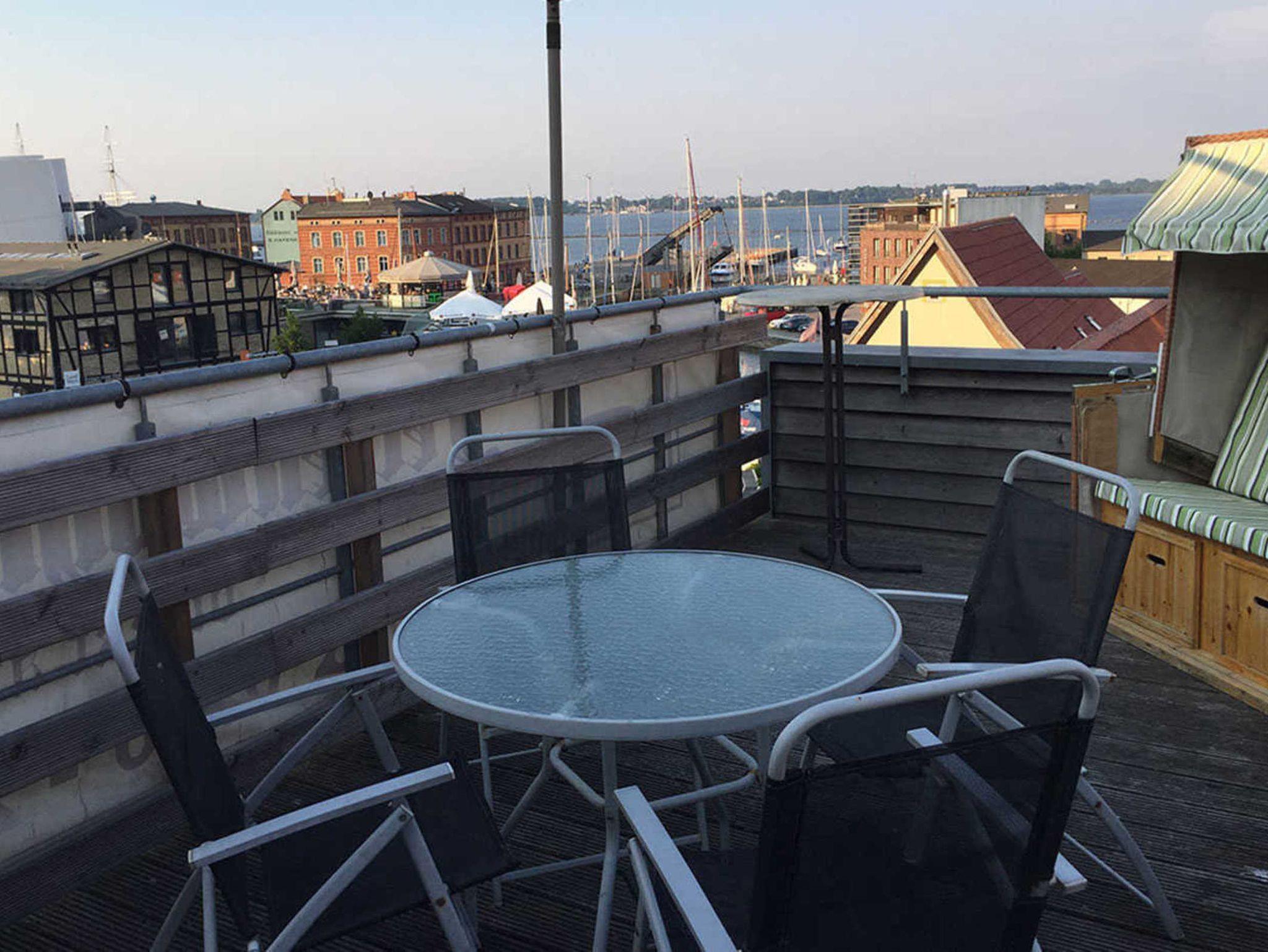 Genießen Sie einen tollen Ausblick auf der eigenen Dachterrasse mit herrlichem Altstadt-, Hafen- und Rügenblick, umgeben von gesunder Ostseeluft in Stralsund!