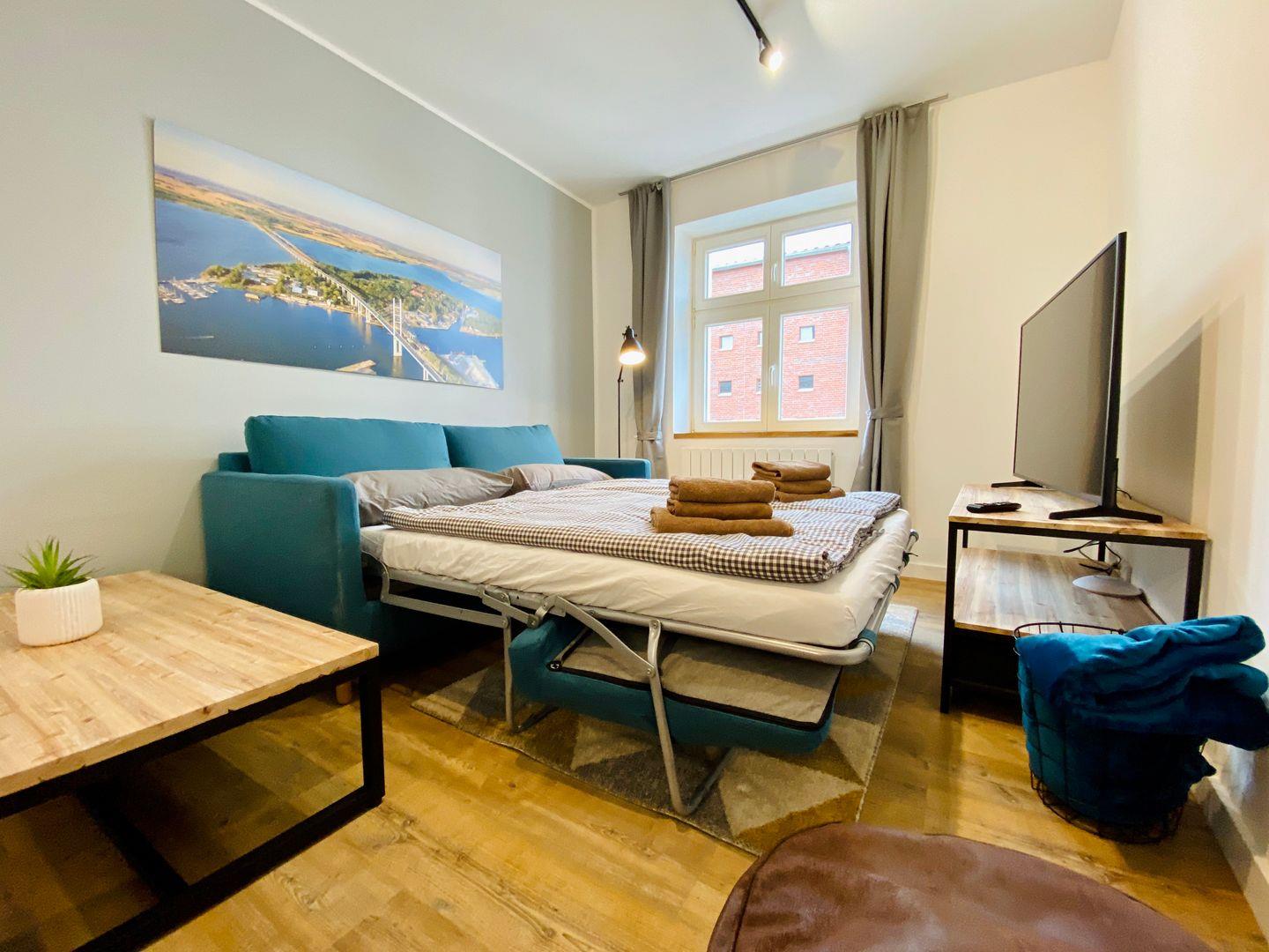 Modernes Appartement in Stralsund mit Hafenblick und zentraler Lage nahe Meer und Stadtzentrum.