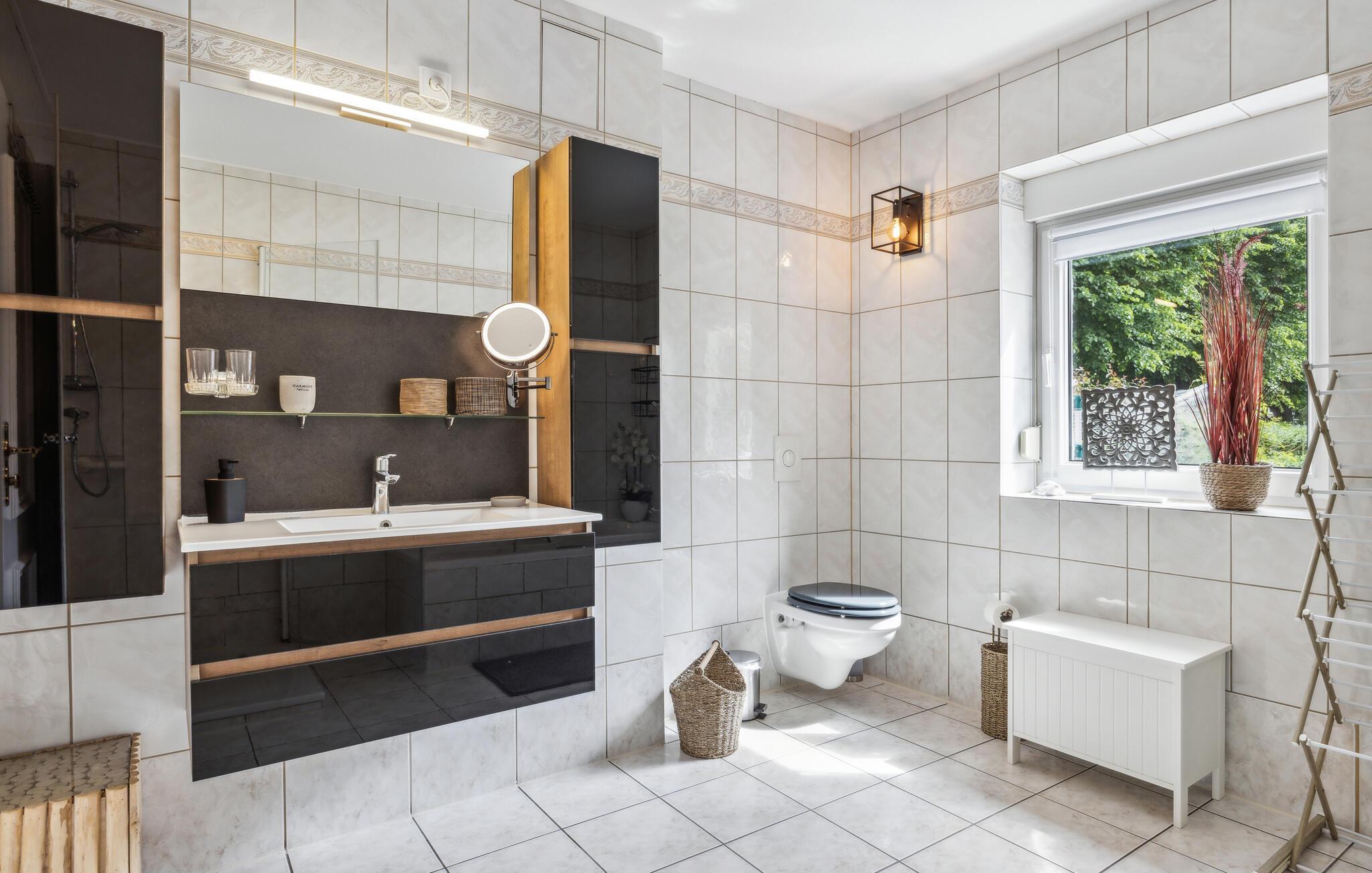 Vom Wohnzimmer gelangen Sie hinaus auf die große, nichteinsehbare Terrasse, die im Sommer zum Grillen und Verweilen einlädt. Sonnen Sie sich auf den Gartenmöbeln und plaudern Sie mit Ihren Lieben, während Sie die lauen Abende mit Spielen abschließen.