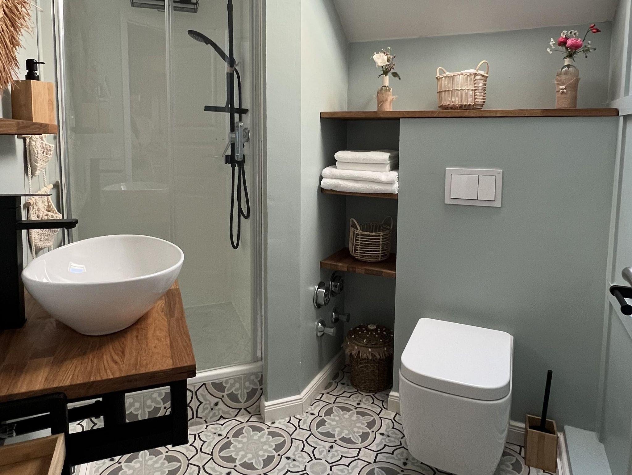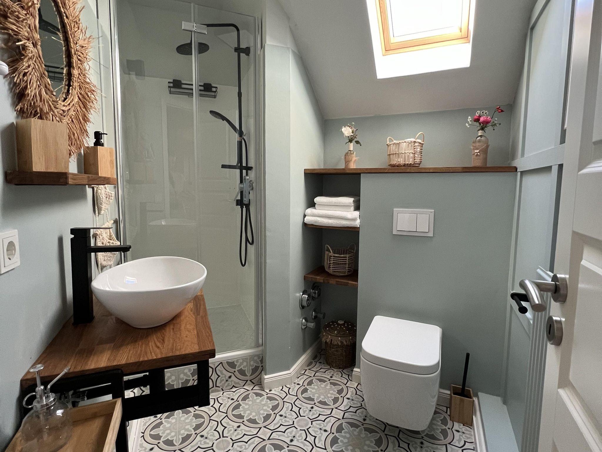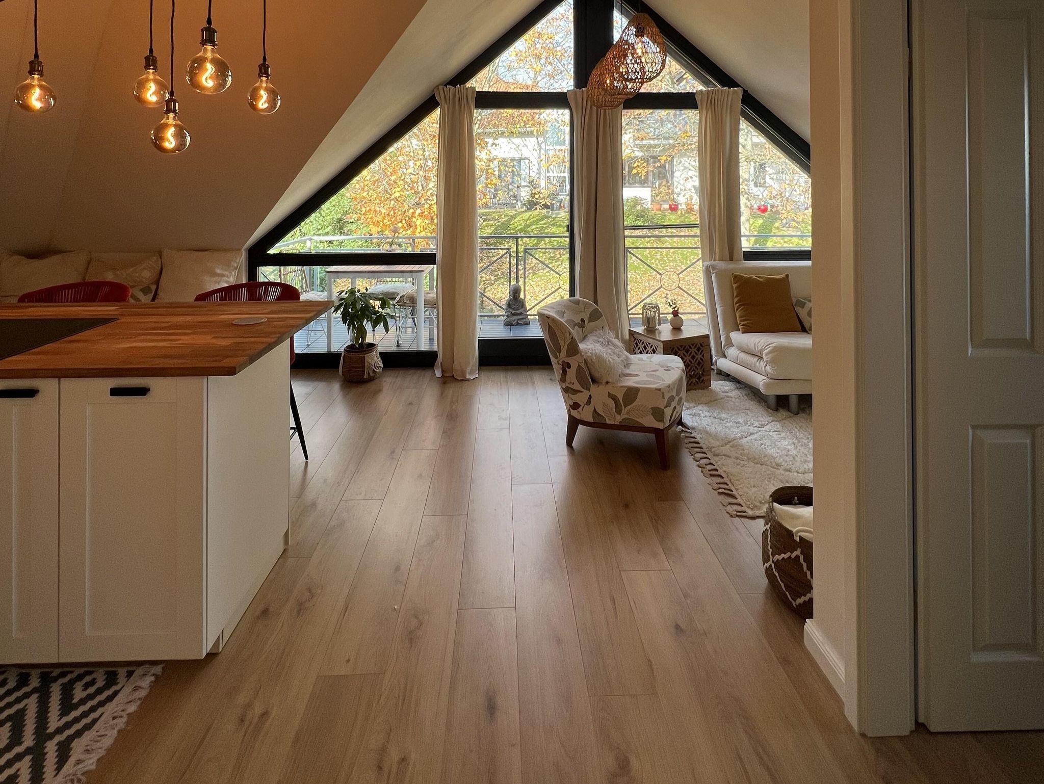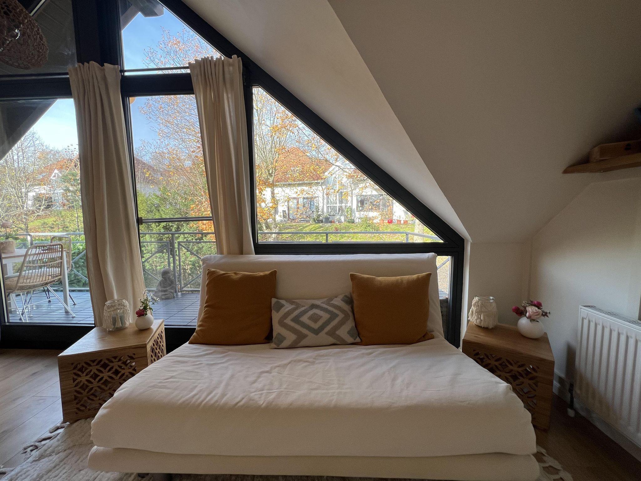 Das Sofa lässt sich ganz leicht zum Bett umwandeln. Bad mit Tageslicht und moderne Ausstattung.