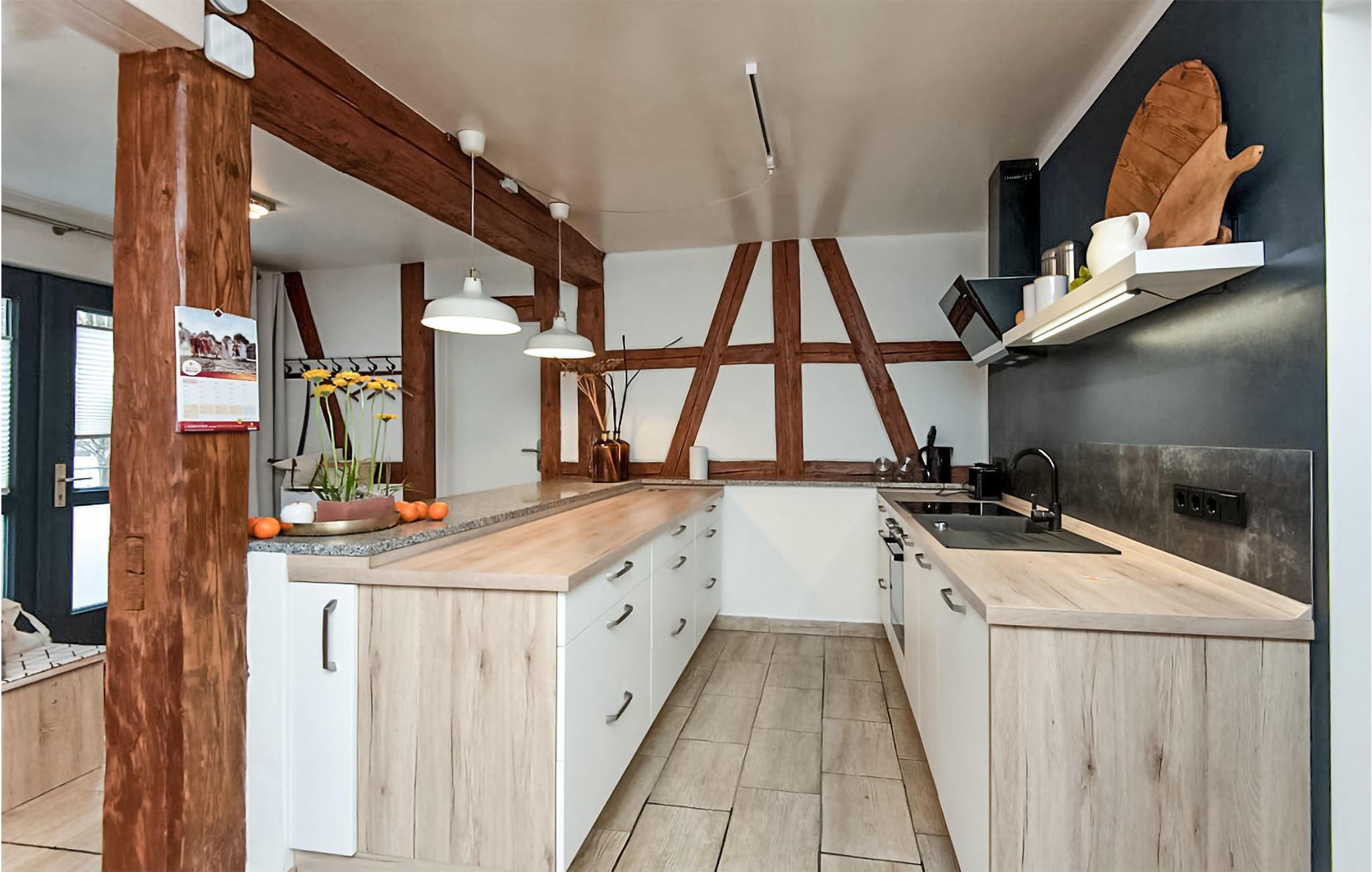 Willkommen in dieser schönen Ferienwohnung, die mit sichtbarem Fachwerkbalkon und liebevollem Dekor eine besondere Atmosphäre versprüht. Kommen Sie hier an und fühlen Sie sich wohl. Die Ausstattung ist komfortabel und bietet Ihnen alles, was Sie zum Relaxen brauchen. Die offene Küche lädt zu gemeinsamen Kochabenden ein, die Sie nach dem Essen, mit einem Film ausklingen lassen können.