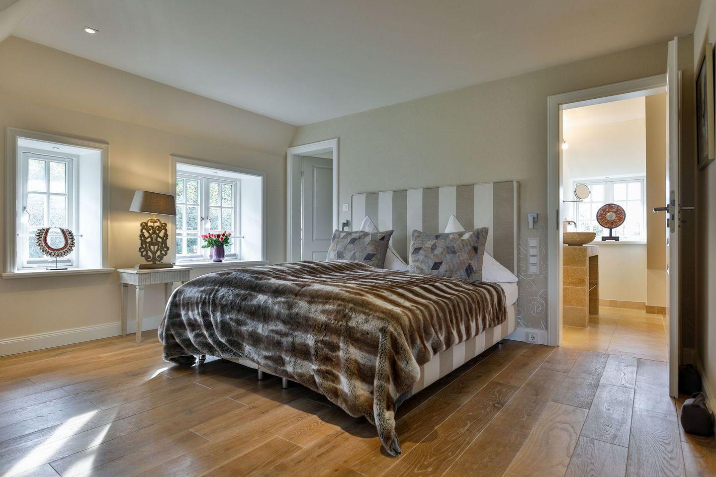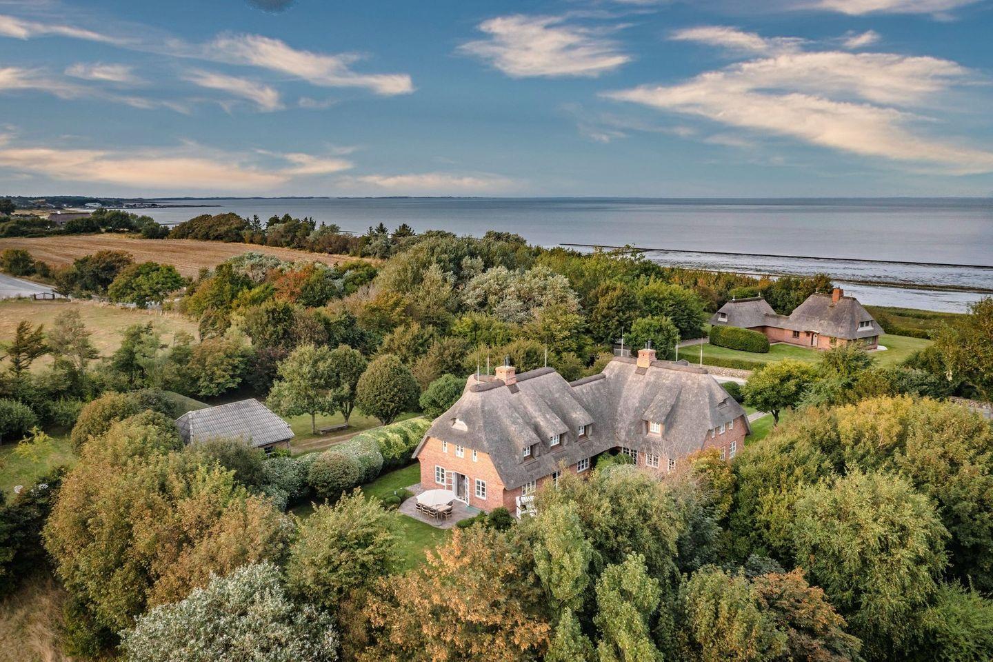 Das Haus ist hochwertig und exklusiv ausgestattet und von einem großzügigen Garten umgeben. Selbstverständlich ist dieses Haus mit 5 Sternen des DTV klassifiziert. Diese mit Reet gedeckte Doppelhaushälfte mit Einzelhaus-Charakter liegt fußläufig zur Keitumer St. Severin und in unmittelbarer Nähe zum Wattenmeer. Der Blick auf das Wattenmeer ist traumhaft. Das helle und großzügige Haus über drei Ebenen (EG, OG, Souterrain) ist ca. 280 m² groß und bietet zwei bis acht Personen ausreichend Platz. Das geräumige und hochwertige Objekt liegt auf einem insgesamt etwa 1.000 m² Grundstück südlich der St. Severin Kirche in Keitum. Das exklusive Doppelhaus wurde mit aufgearbeiteten Ziegelsteinen von 1886 erbaut. Die Räumlichkeiten im Erdgeschoß sind mit großflächigen sehr hochwertigen Natur Limestone ausgelegt, im Obergeschoß liegen Echtholzeichendielen, das gesamte Souterrain und die Bäder sind ebenfalls mit Limestone und Holzboden verlegt. Im Erdgeschoss und im Souterrain ist jeweils eine Fussbodenerwärmung integriert, zusätzlich sind auch Heizkonvektoren in allen Räumen angebracht. Auf allen Ebenen finden Sie hochwertige Tischlereinbauten. Darüber hinaus bietet das Haus jeglichen Komfort wie Sauna mit Ruheraum, Gaskamin, Flat-TV's (streamingfähig) mit Soundbar, WLAN (High-Speed Internet), alle Schlafzimmer und Wohnzimmer mit Flachbildschirmen, Alarmanlage, Geschirrspüler, Mikrowelle, Backofen, Kühlschrank, Nespresso Kaffeemaschine, Soda-Stream, Induktionsherd,Hauswirtschaftsraum mit Waschmaschine und Trockner, Safe und zwei Pkw-Stellplätze. Bademäntel sind für Sie in diesem Domizil kostenfrei. Die Betten sind jeweils 1,80 x 2,00 m. Das Haus ist von einem großzügigen gepflegten Garten mit zwei Terrassen und Friesenwällen umgeben.