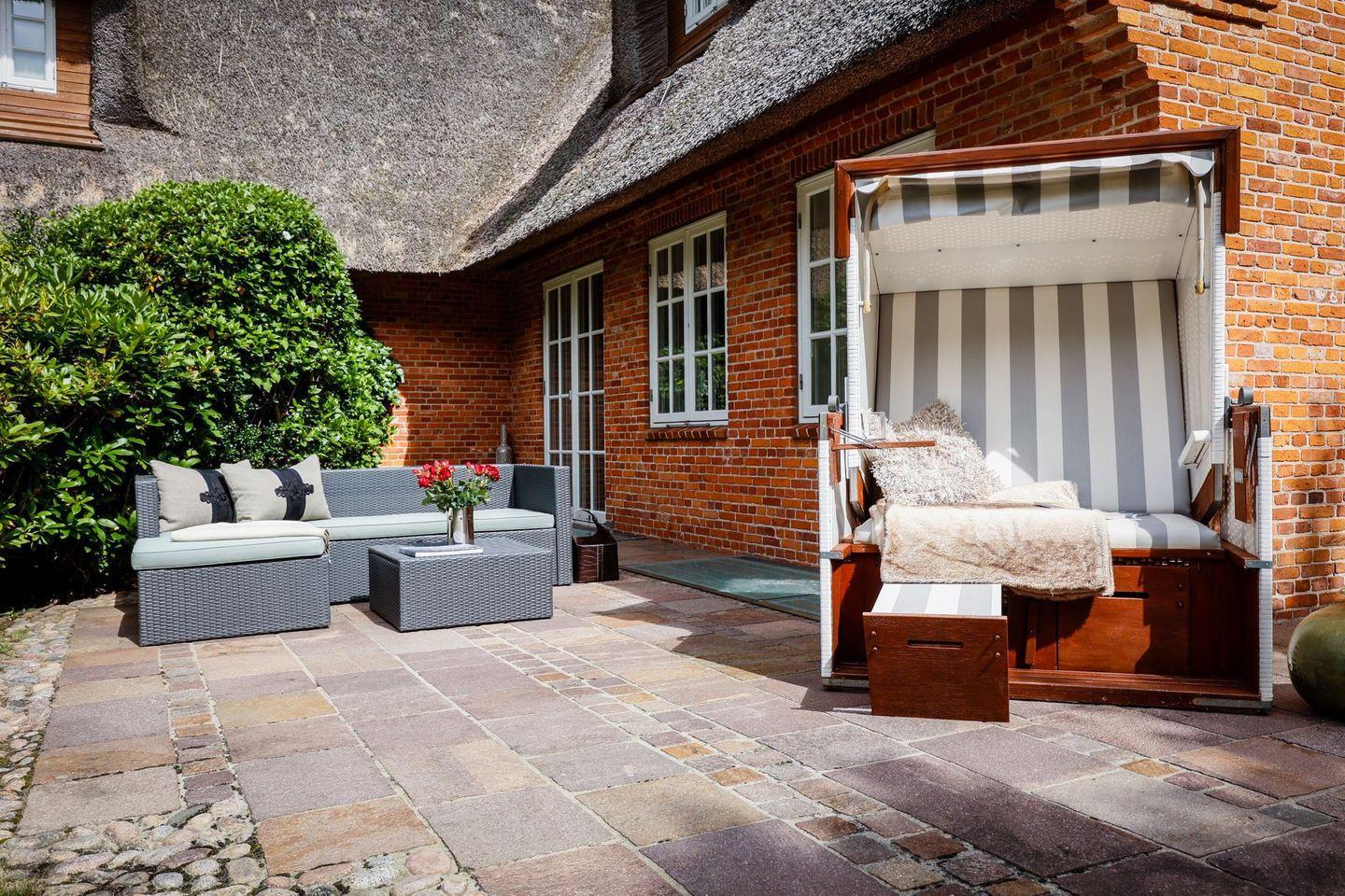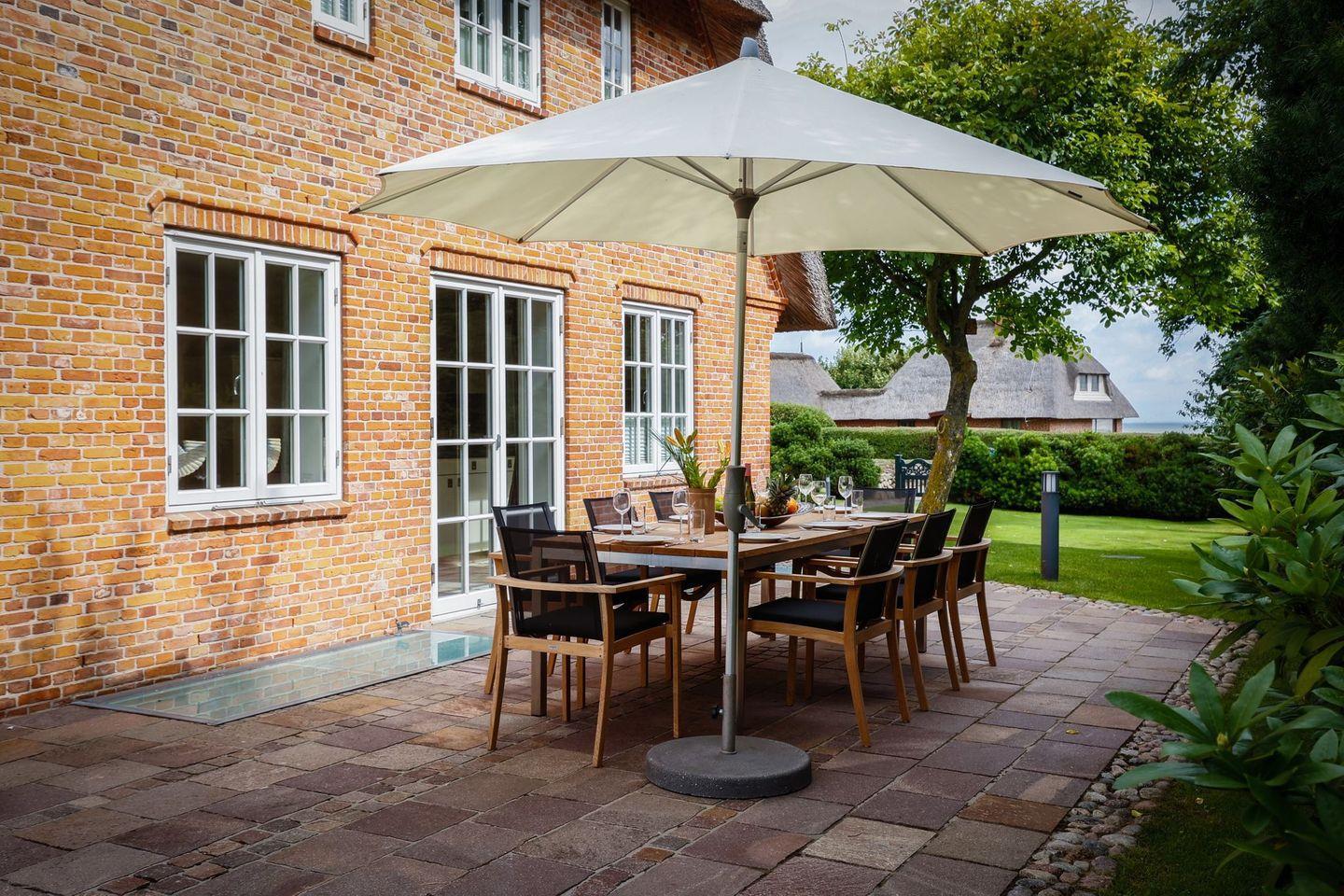 Keitum Royal auf Sylt: Großzügige, reetgedeckte Doppelhaushälfte mit Meerblick, Sauna und Garten für erholsamen Urlaub.