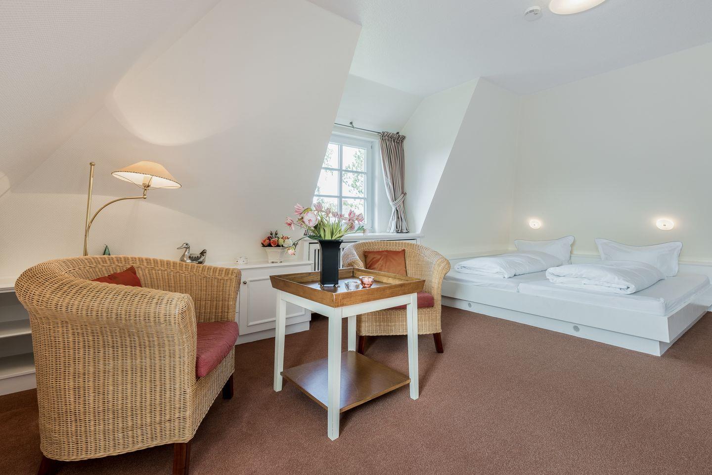 Die sehr geräumige Haushälfte (Erdgeschoß, Obergeschoß und Souterrain) ist ca. 110 m² groß und bietet zwei bis vier Personen ausreichend Platz. Das reetgedeckte Haus mit aufwändigen Tischlerarbeiten liegt mit schönem eingewachsenen Garten im Westteil des Ortes. Das Haus verfügt über Komfort wie Telefon, W-LAN, zwei Flat-TV, DVD-Player, Stereoanlage mit CD, Cerankochfeld, Mikrowellen-Backofen, Geschirrspüler, Waschmaschine und Trockner. Zu dem Haus gehört ein kleines Gartenhaus, in dem Sie z.B. Fahrräder abstellen können. Selbstverständlich haben Sie auch einen Pkw-Stellplatz.