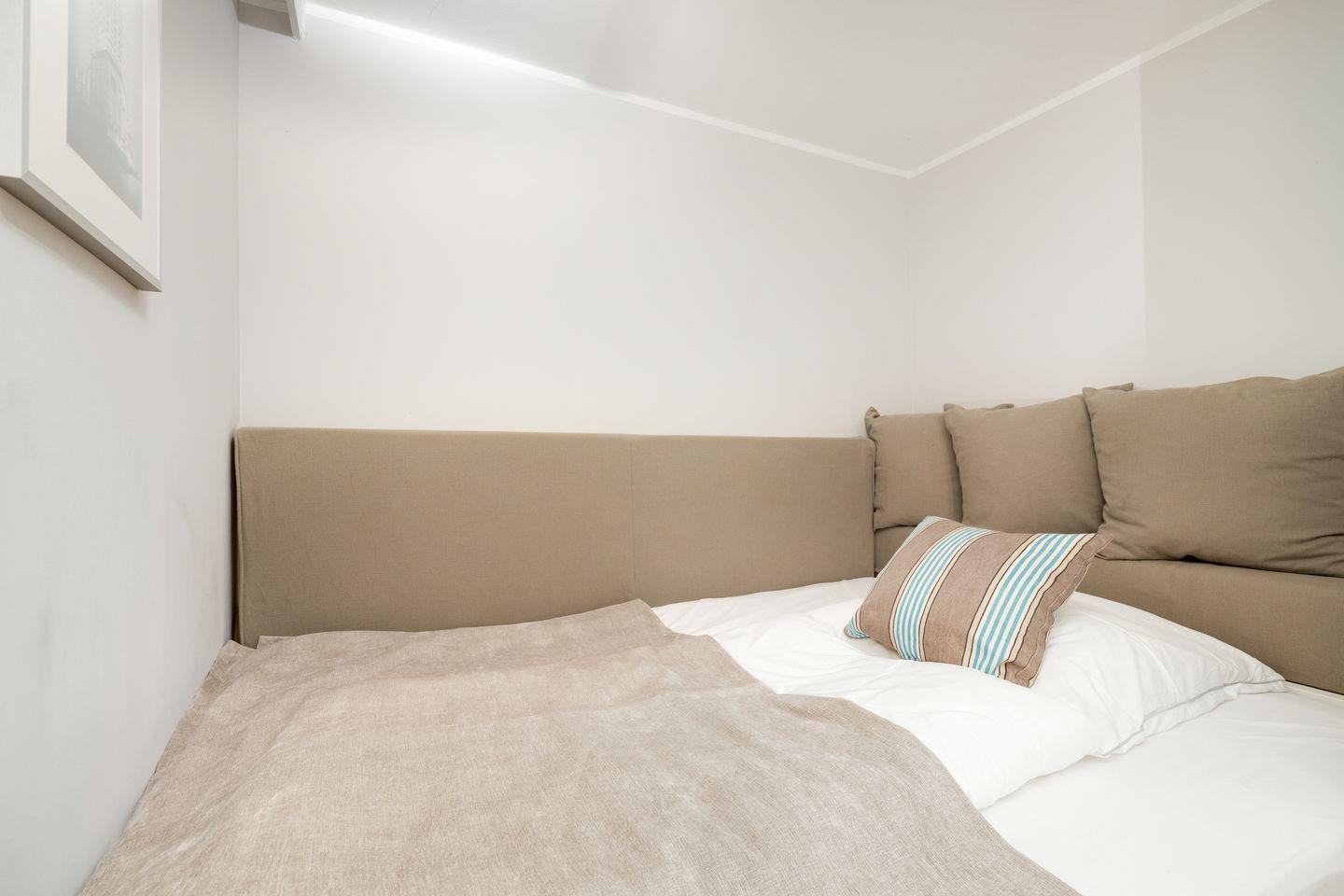 Schlafen 1: kleiner Schlafraum mit Einbaubett (140 x 200 cm) und