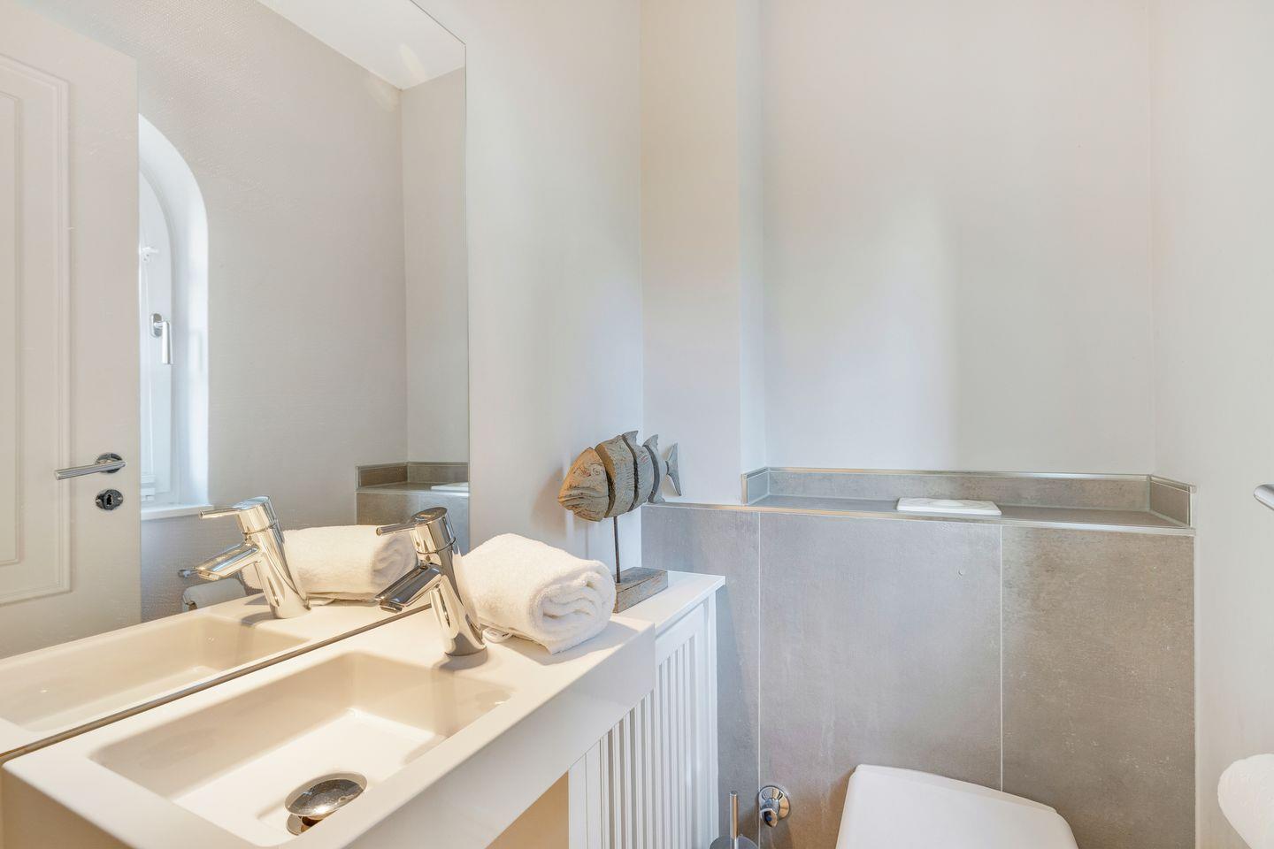 Mit ca. 62 m² haben hier zwei bis drei Personen Platz. Das reetgedeckte Haus liegt idyllisch im Süden von Keitum. Das Haus hat drei Wohneinheiten und ist sehr gepflegt. Die hochwertige, stilsichere Einrichtung ist geprägt durch klassisch-moderne Elemente und Holz- und Fliesenböden. Die Wohnung verfügt über jeglichen Komfort wie Flat-TV, Geneva Sound System mit Bluetooth, Telefon, W-LAN, Geschirrspüler, Nespresso Kaffeemaschine, 2-Platten Induktionsherd, Backofen und Waschmaschine. Selbstverständlich steht ebenso ein Pkw-Stellplatz zur Verfügung.