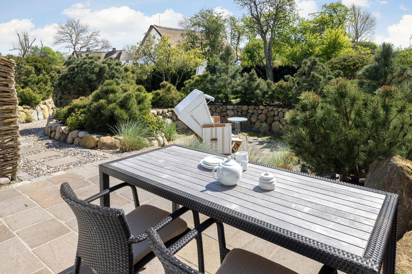 Charmante Ferienwohnung Persimmon in Keitum mit Terrasse, Sauna und Gartenblick – ideal für entspannte Auszeiten auf Sylt.
