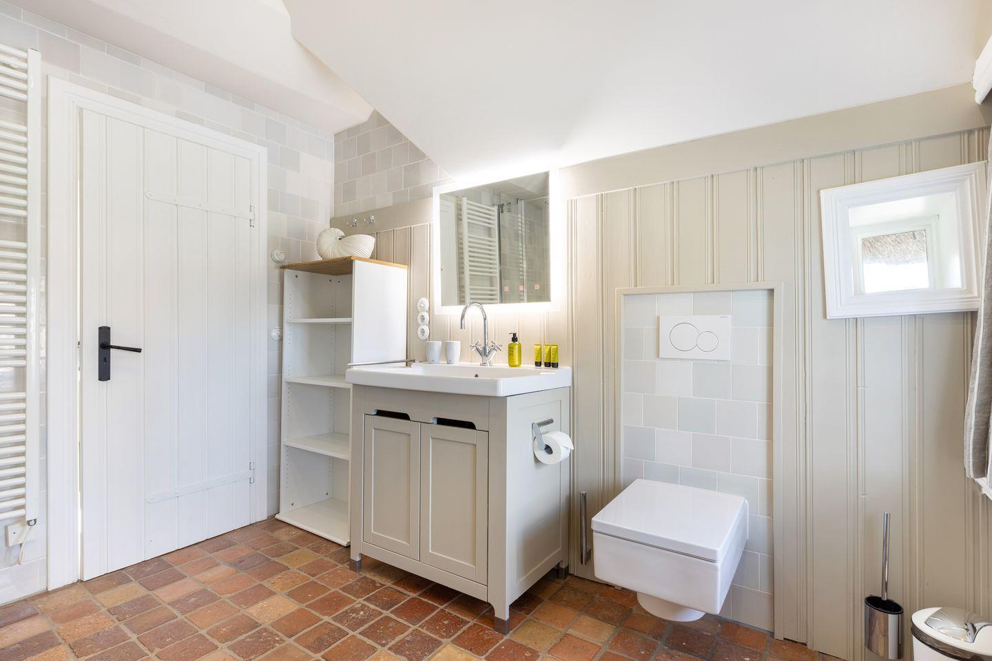 OG: zwei Schlafzimmer mit Doppelbett (180x200cm) und TV, ein Schlafzimmer mit zwei Einzelbetten (90x200cm). Ein Bad mit Dusche, Badewanne und WC. Ein Bad mit Sauna, Dusche und WC.