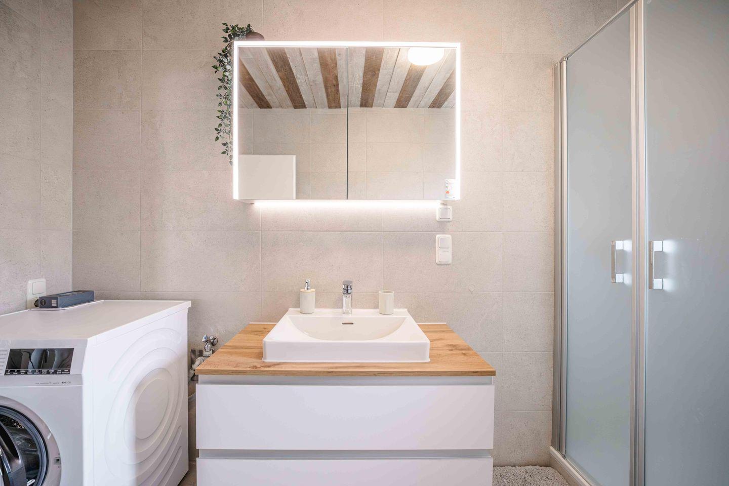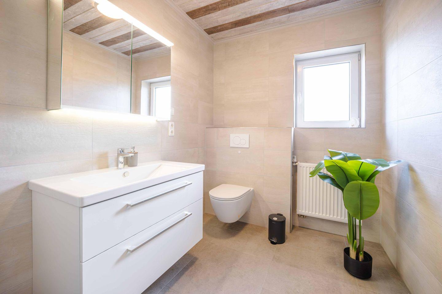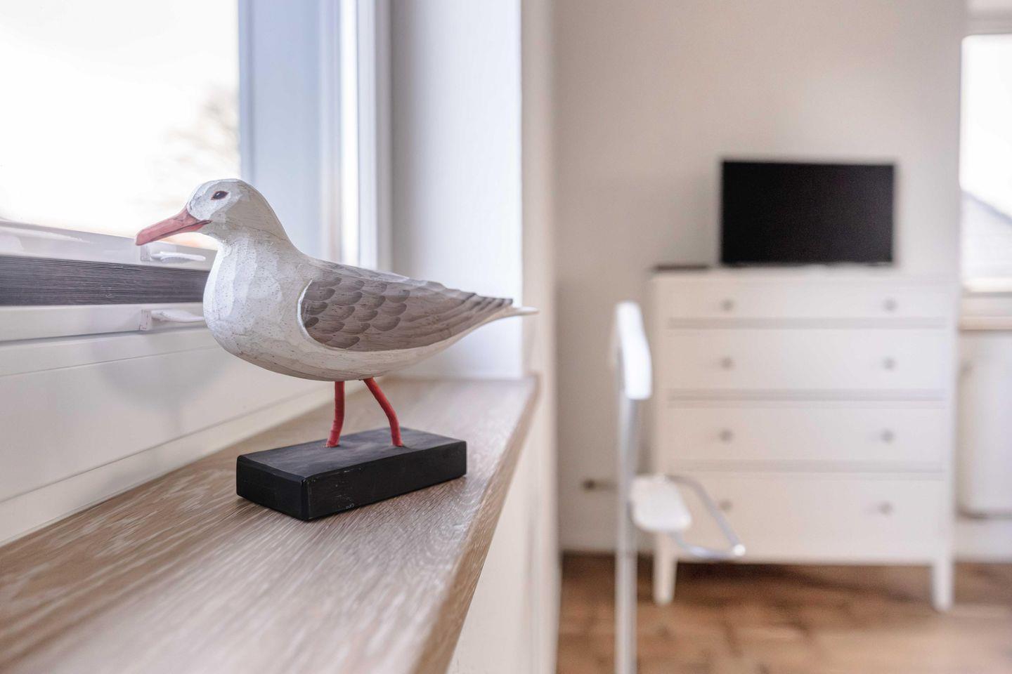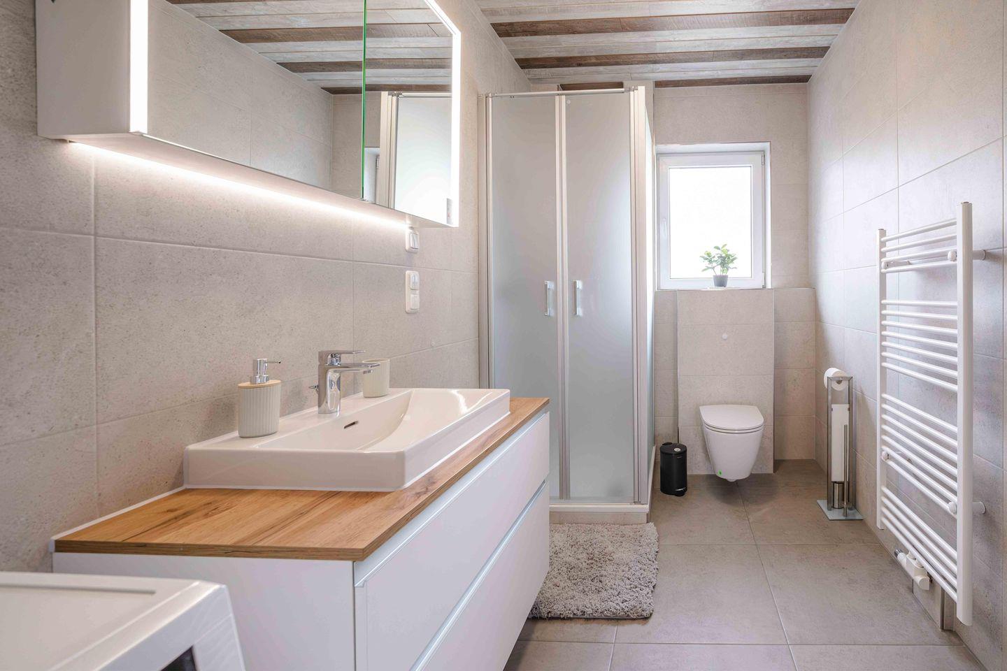 Ruhe und Erholung finden Sie in den beiden stilvollen Schlafzimmern, die jeweils mit einem komfortablen Boxspringbett (180x200 cm) mit offenem Fußende und einem geräumigen Kleiderschrank ausgestattet sind. Damit Ihr Schlaf ungestört bleibt, verfügen alle Fenster über Verdunklungsmöglichkeiten, sowie Fliegengitter an je einem Fenster. Das helle Badezimmer mit Dusche, WC und Fenster wird durch ein praktisches Gäste-WC ergänzt. Auch an den Alltag wurde gedacht: Ein separater Schreibtisch, eine Waschmaschine zur Eigennutzung sowie Bügelutensilien und ein Staubsauger stehen Ihnen zur Verfügung.