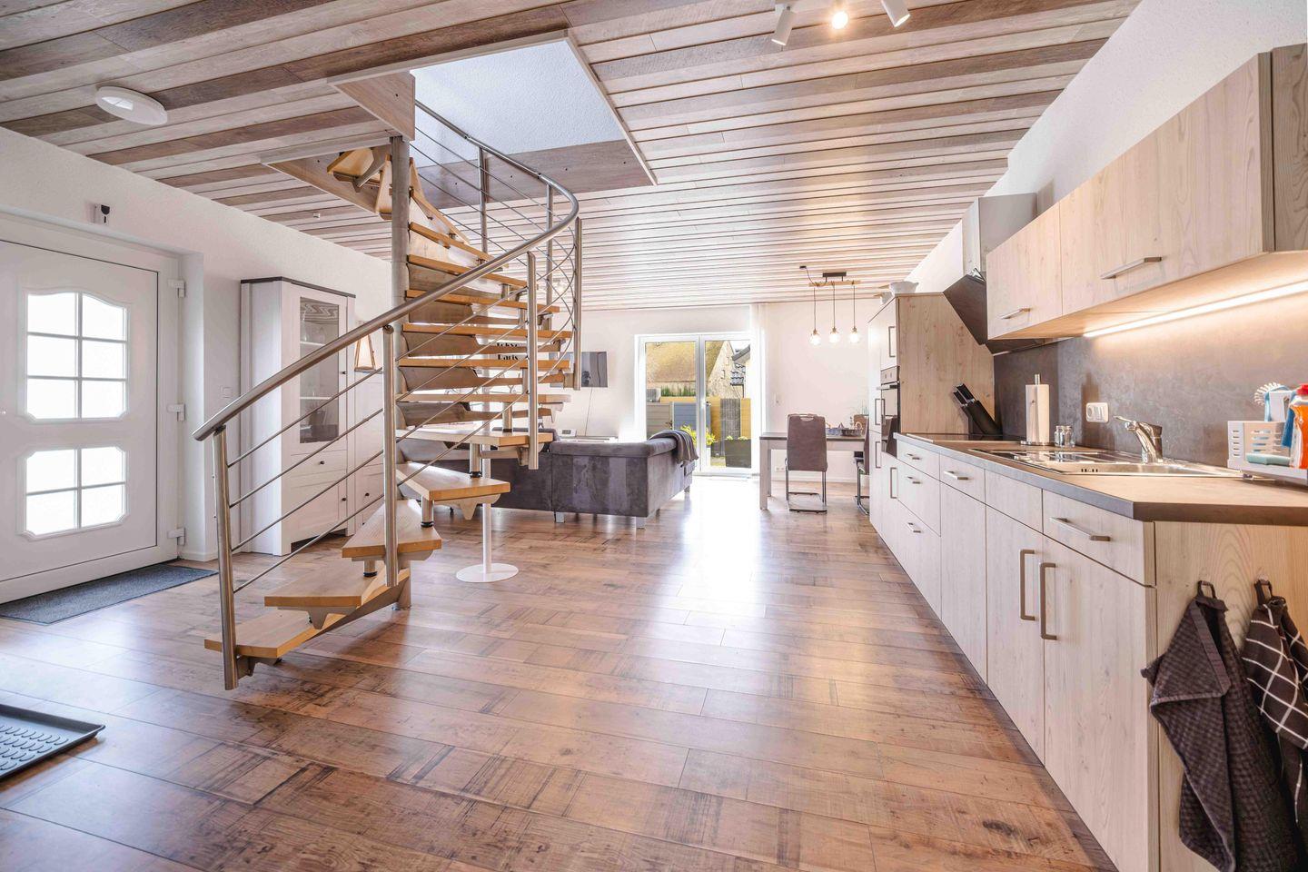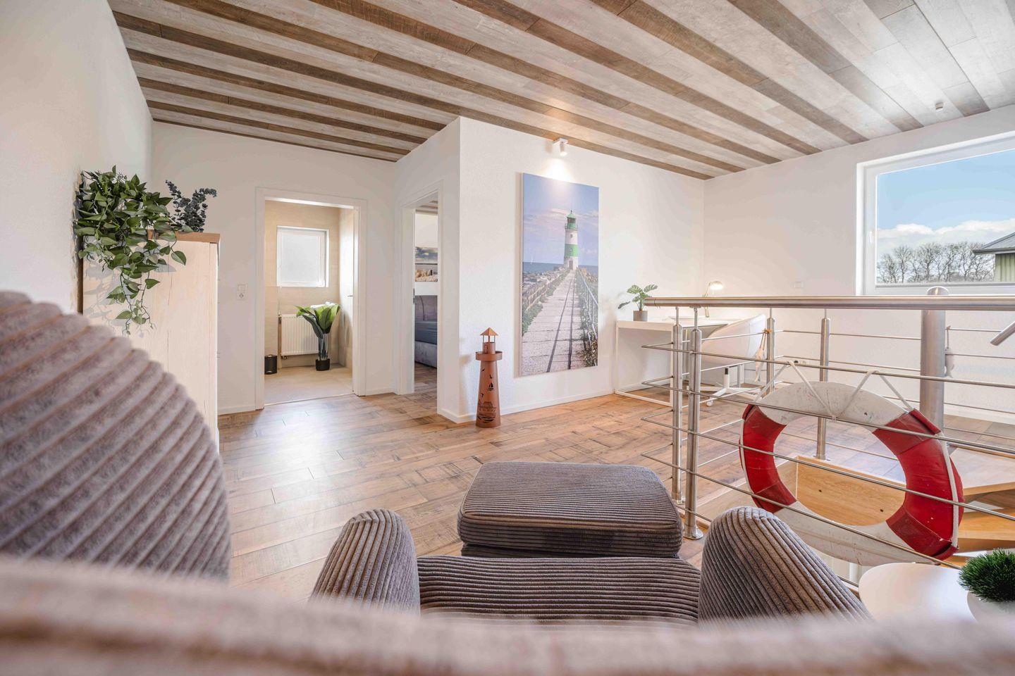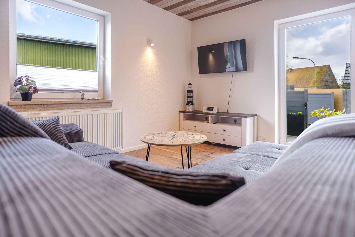 Herzlich willkommen im Haus Sonnengelb, Ihrem modernen und gemütlichen Urlaubsdomizil in Taarstedt-Scholderup. Auf großzügigen 98 m² erwartet Sie ein mit viel Liebe zum Detail gestaltetes Haus für bis zu vier Personen. Das Herzstück des Hauses bildet der kombinierte Wohn- und Essbereich mit einer modernen, offenen Küche. Hier können Sie nach Herzenslust kochen – unterstützt von einer hochwertigen Ausstattung inklusive Cerankochfeld, Geschirrspüler und praktischen Extras wie Handrührgerät und Toaster – oder entspannte Stunden auf dem Sofa verbringen. Für Unterhaltung sorgen WLAN, ein Radio mit DAB- und Internetfunktion sowie zwei Fernseher mit waipu.tv.