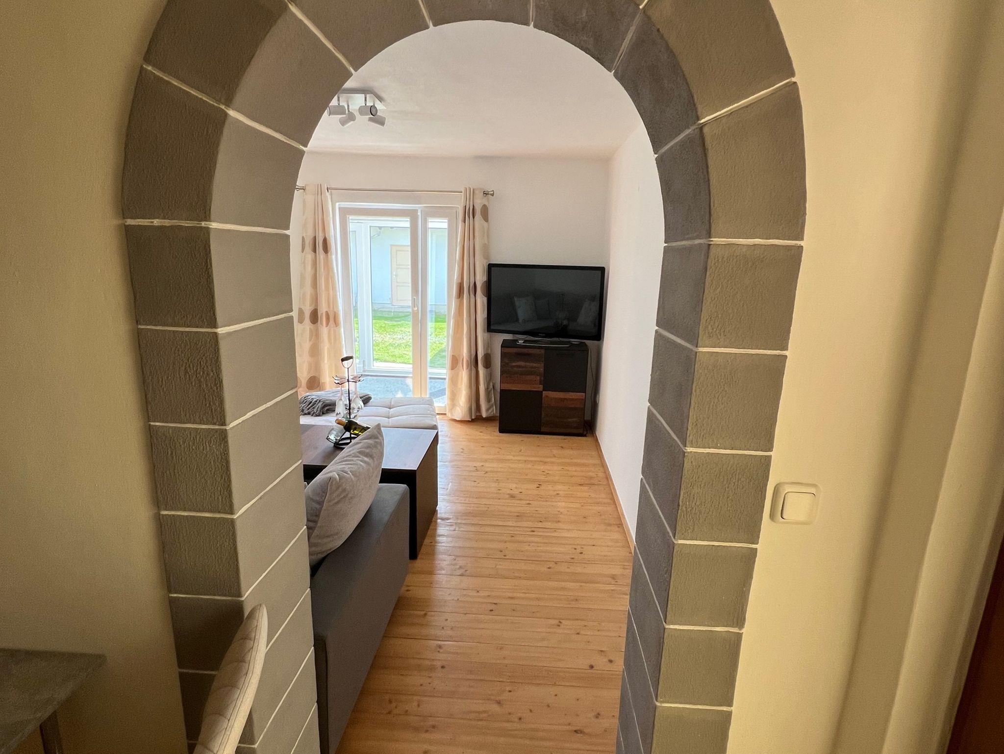 Die Ferienwohnung liegt im Erdgeschoß, verfügt über einen eigenen Eingang, sowie Parkmöglichkeit auf dem Grundstück, evtl. Garage.