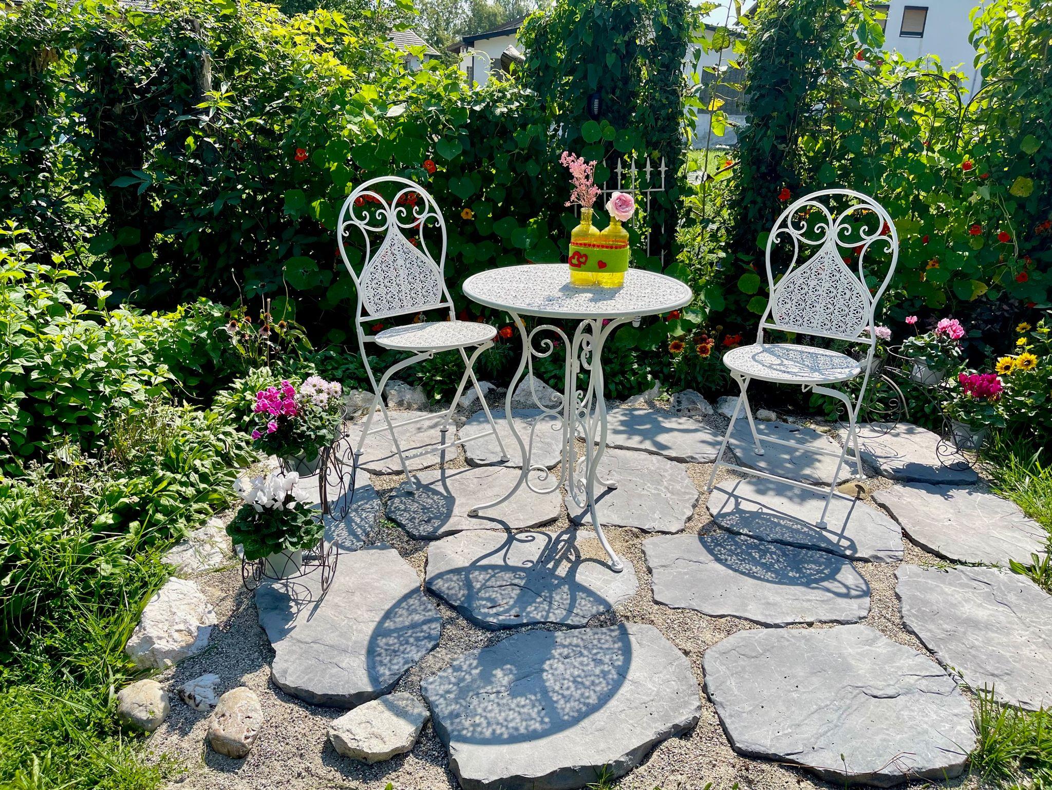 - ein großzügiger ca. 400?m² großer Garten, liebevoll angelegt, mit mehreren Ebenen, ausgestattet mit Sonnenliegen, Tischen und Stühlen
